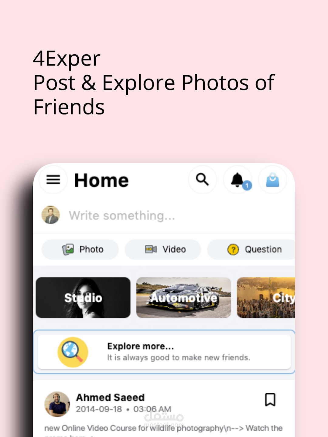4Exper هو موقع ويب وتطبيق موبايل وديسكتوب تم إنشاؤه عن طريق Flutter بالكامل يقدم خدمات ذات صلة بالتصوير الفوتوغرافي ومجتمع المصورين. تتضمن بعض الخدمات التي يقدمونها: