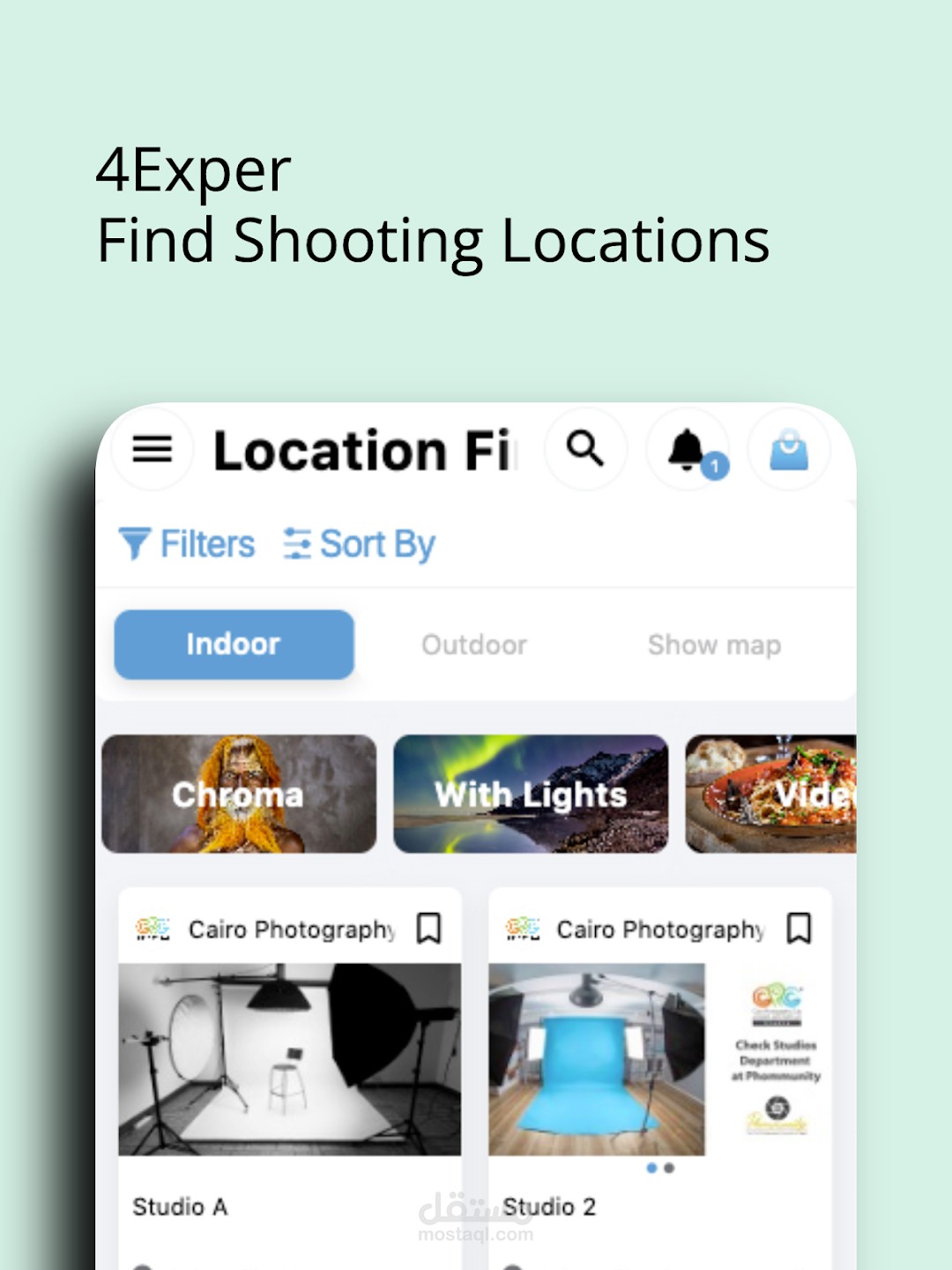 5- تأجير الاستوديوهات: يتوفر لدى 4Exper قسم حيث يمكن للمصورين استئجار استوديوهات لجلسات التصوير. تأتي الاستوديوهات مجهزة بمعدات الإضاءة والإكسسوارات الأخرى الضرورية لجلسات التصوير.