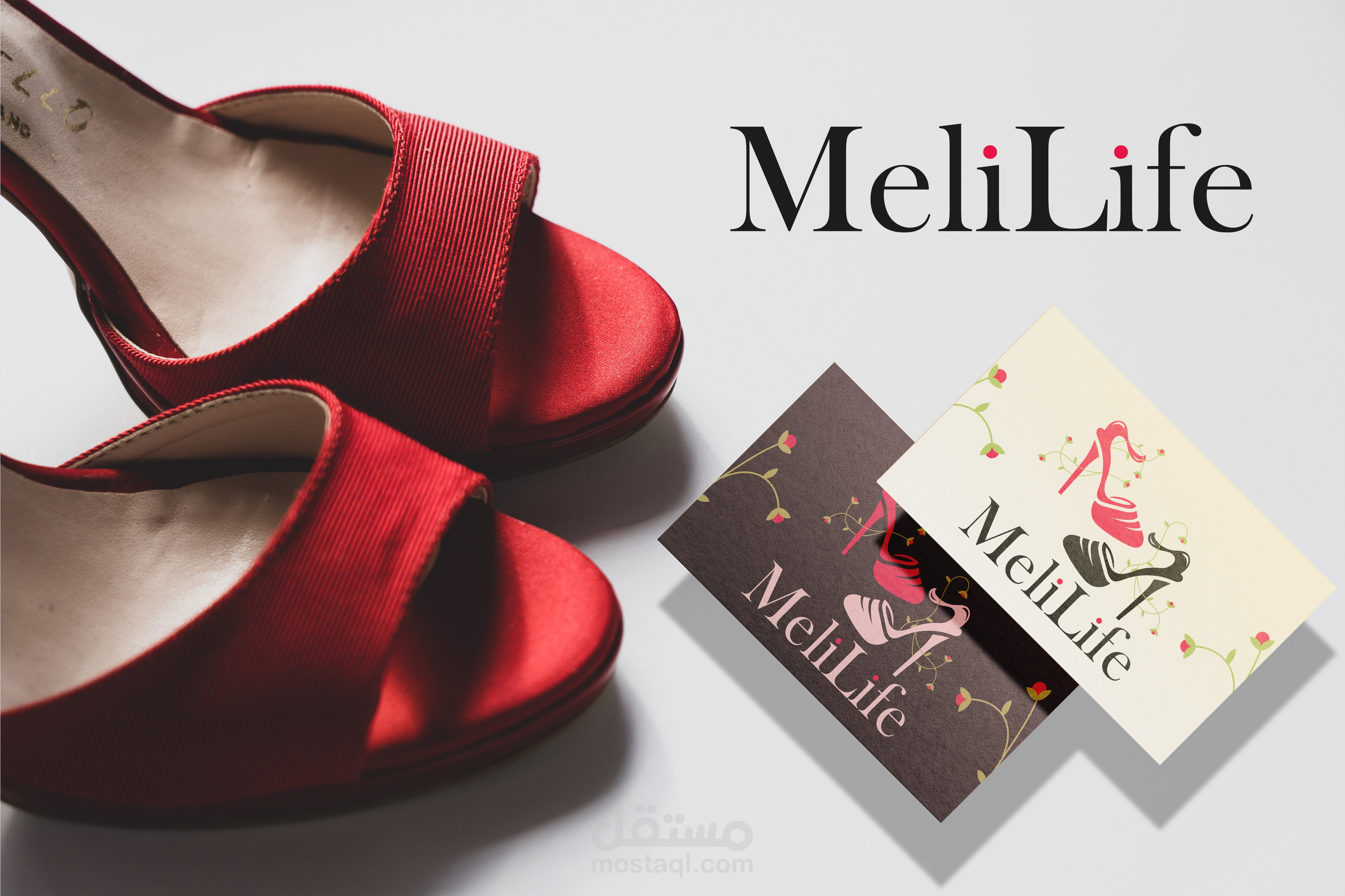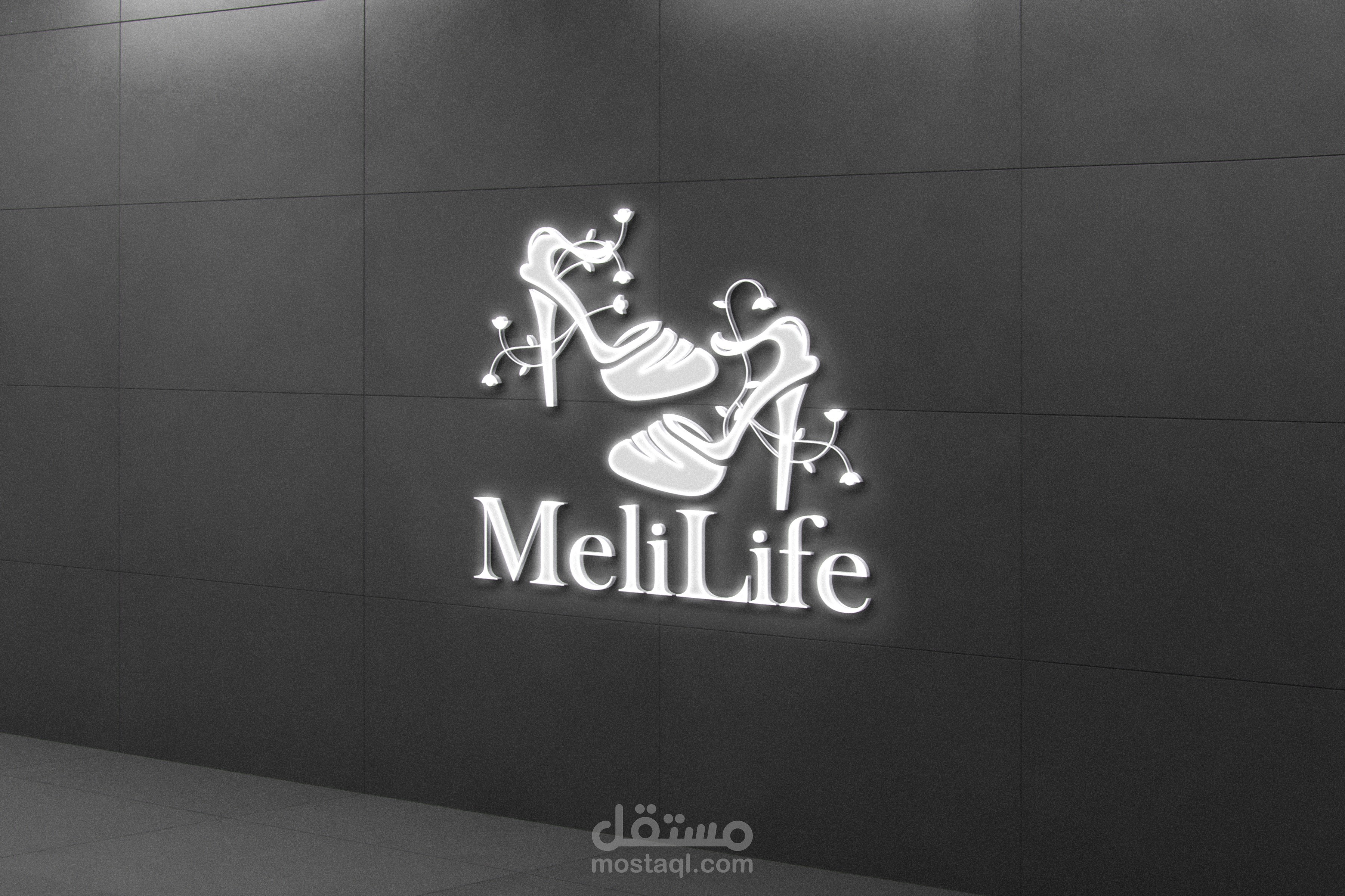 تصميم شعار مع هوية بصرية كاملة لبراند احذية نسائية باسم:"Melilife".