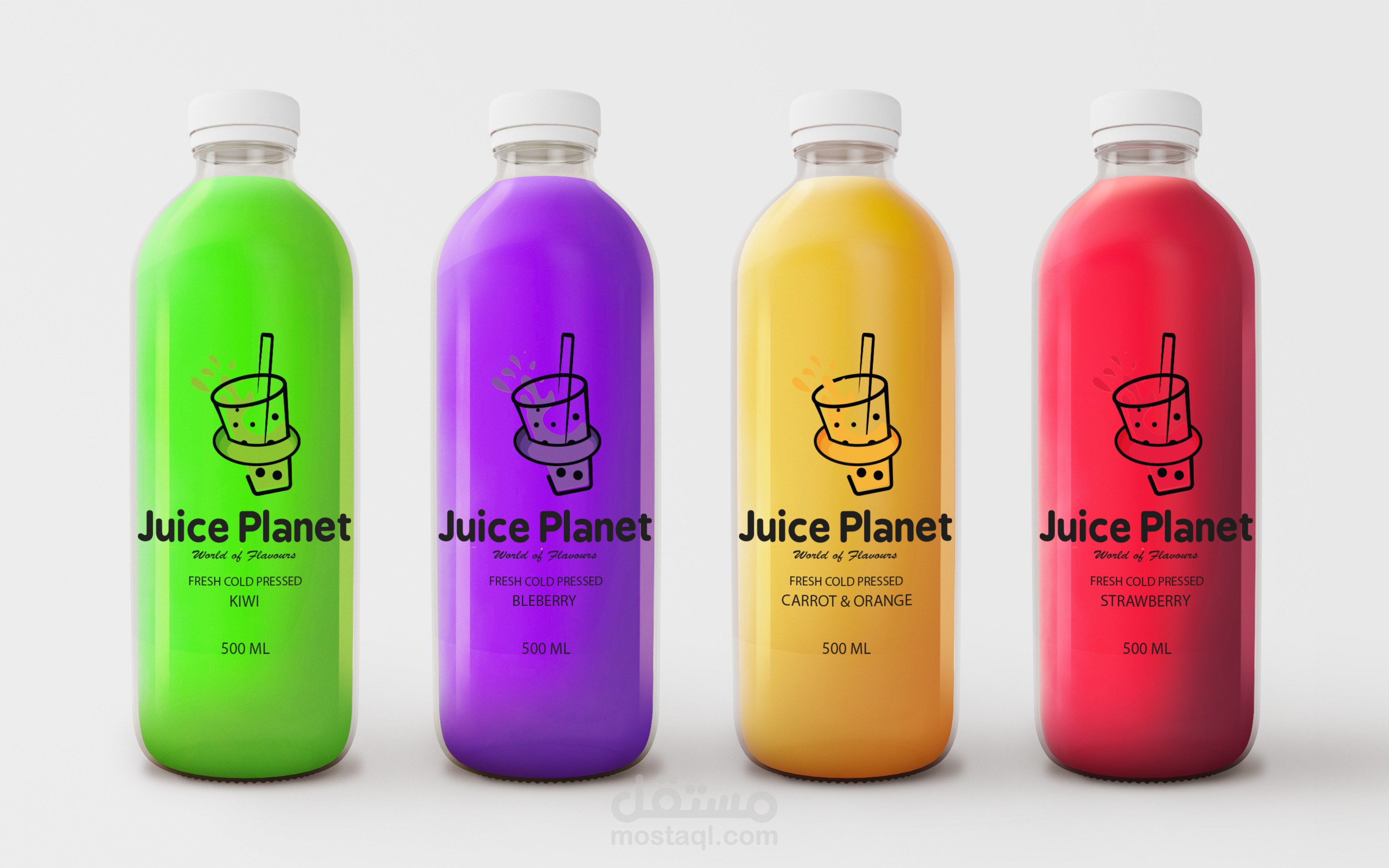 تصميم شعار وبزنس كارت وبعض الملصقات لمتجر عصائر باسم Juice planet