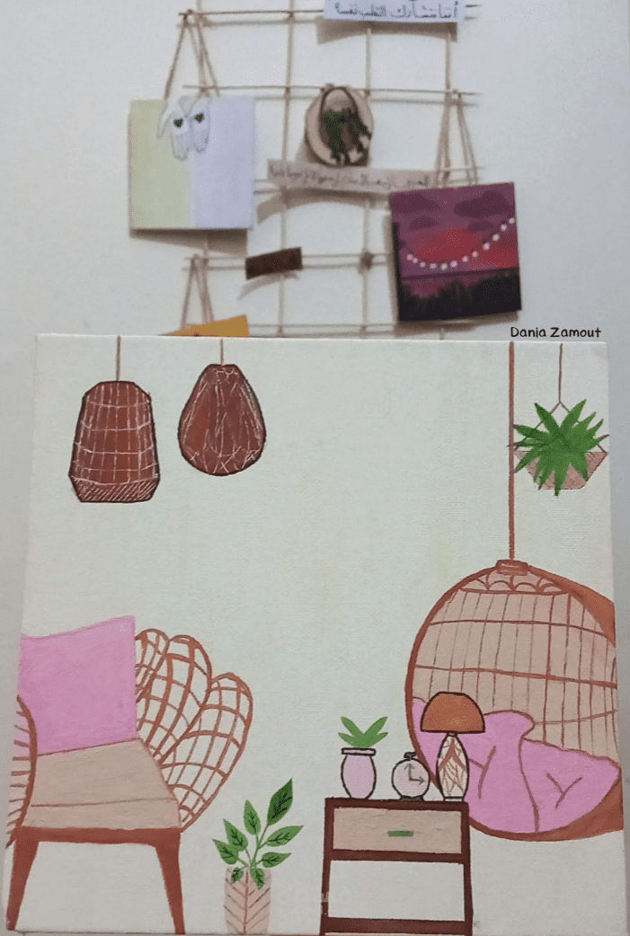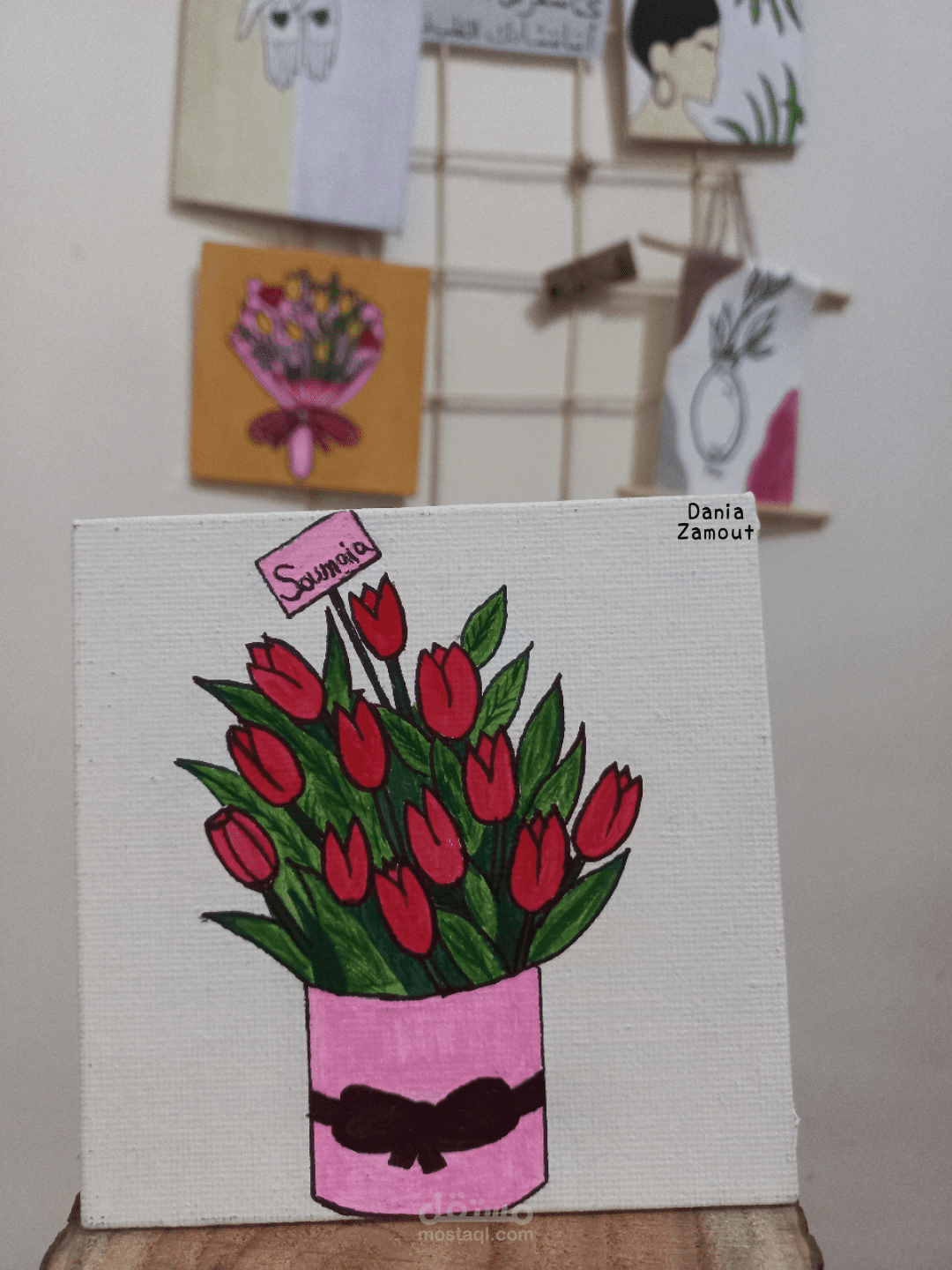الرسم بالالوان على لوحات كانفس بحجوم مختلفة