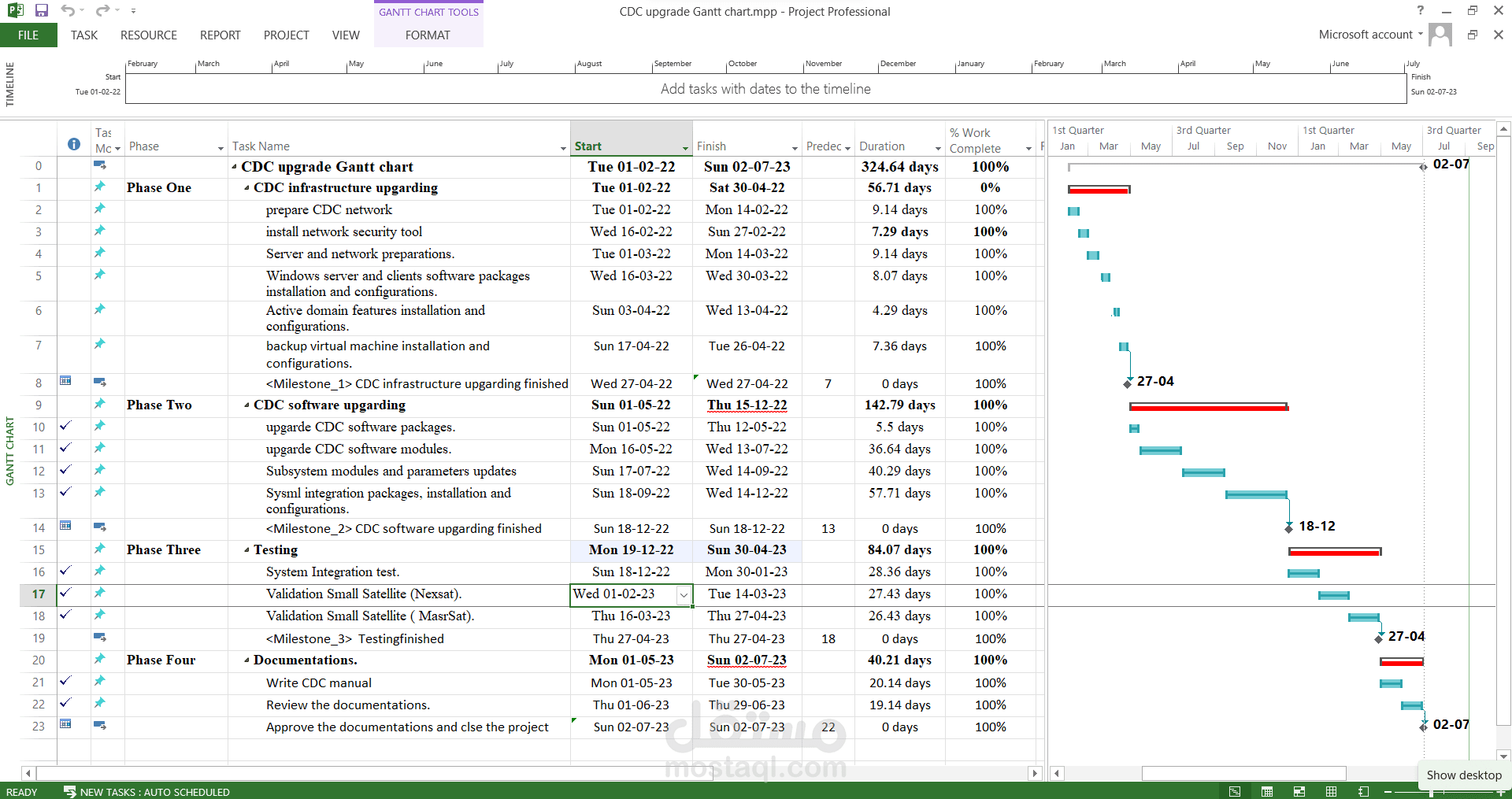 CDC upgrade Gantt chart