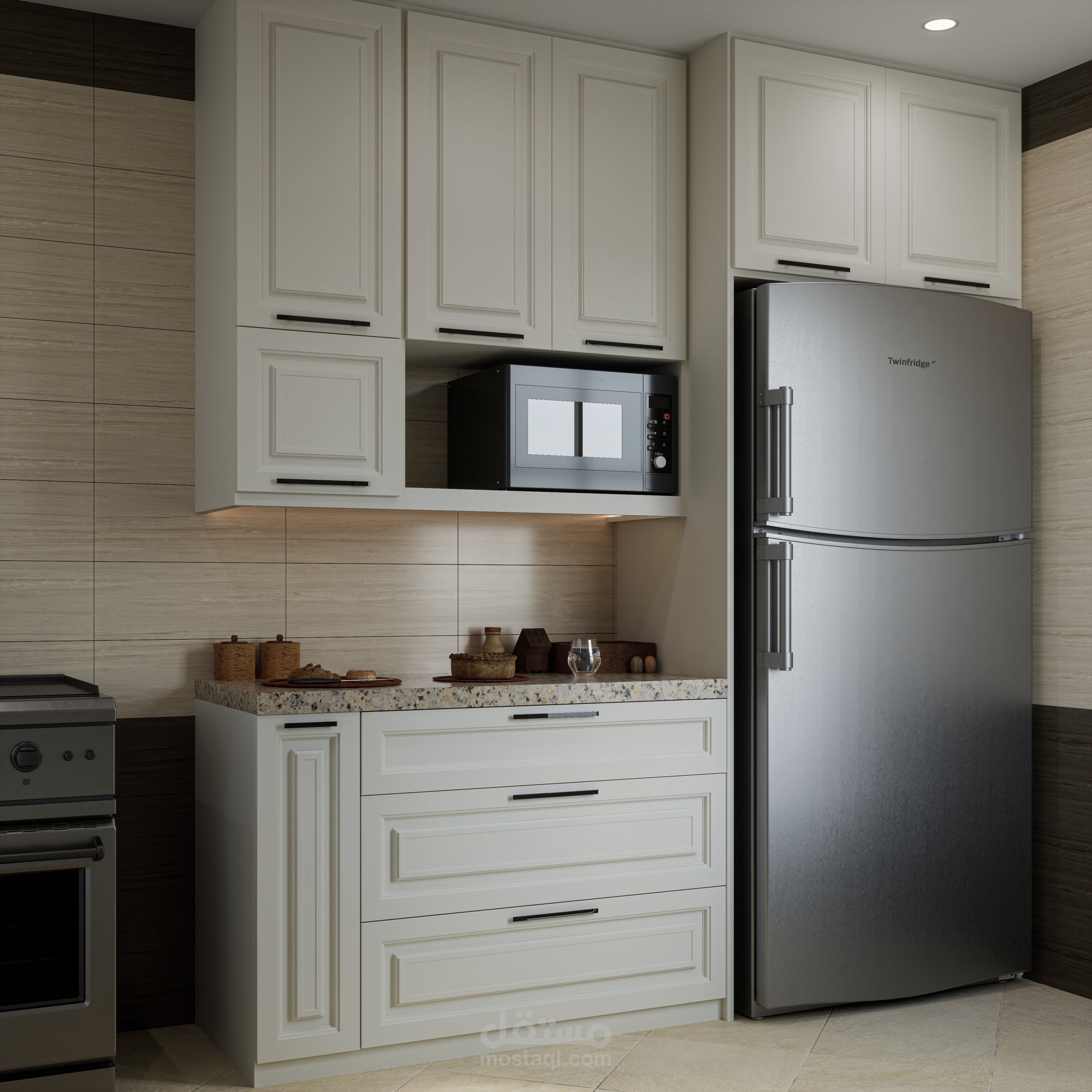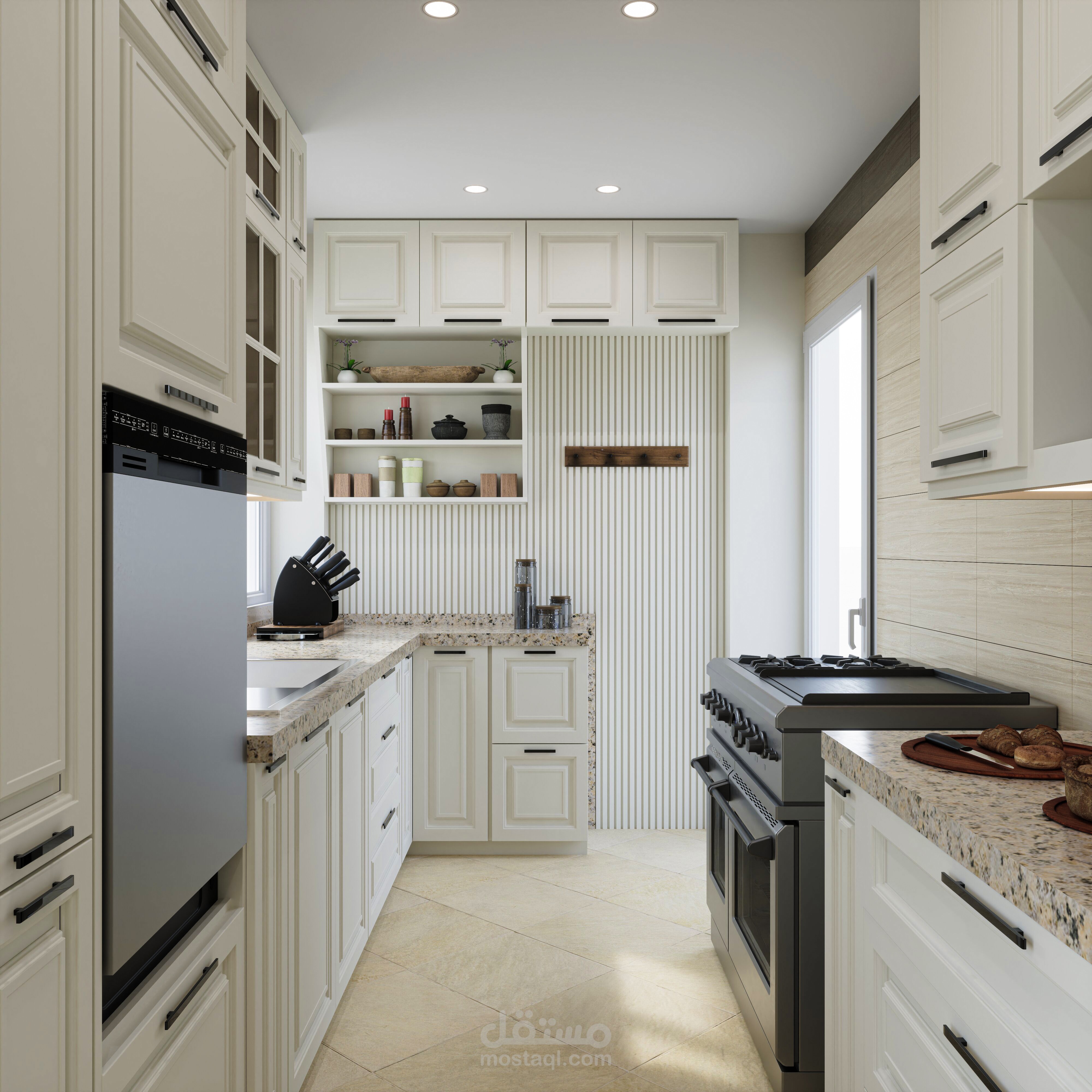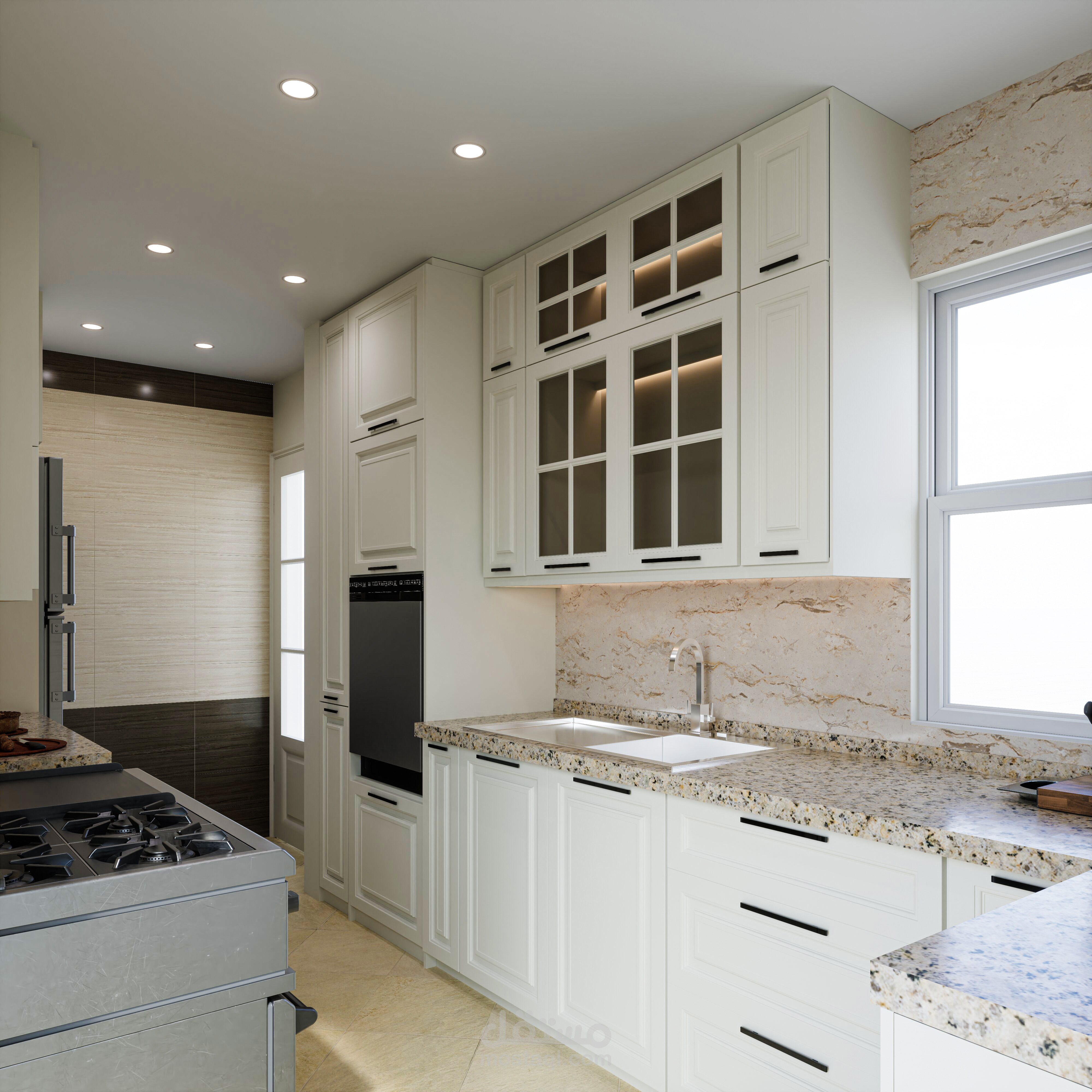 تصميم مطبخ صغير 12 متر مربع بستايل neo classic