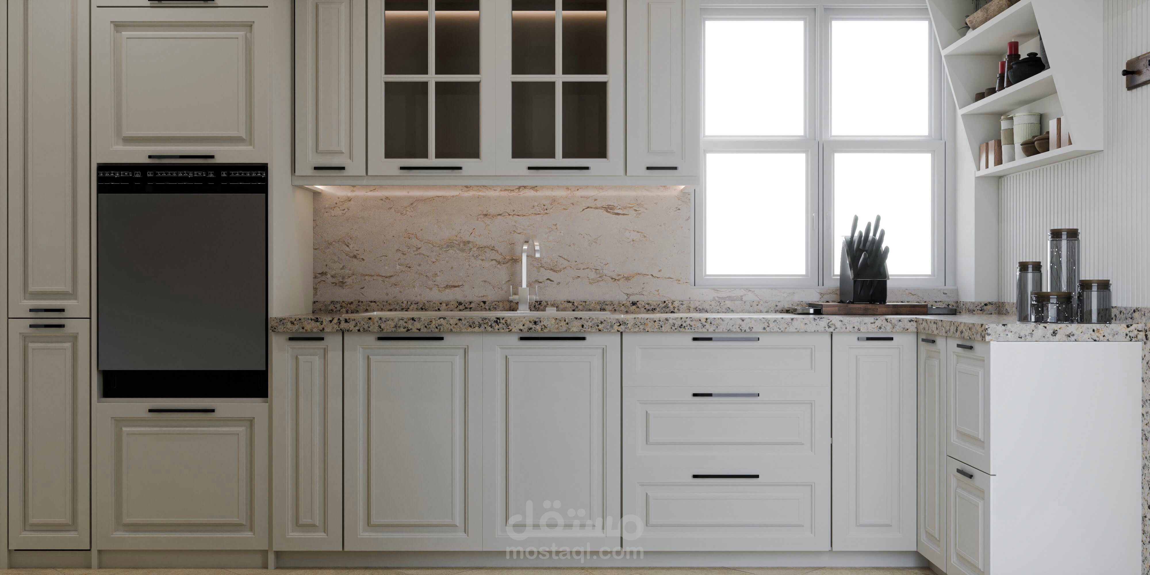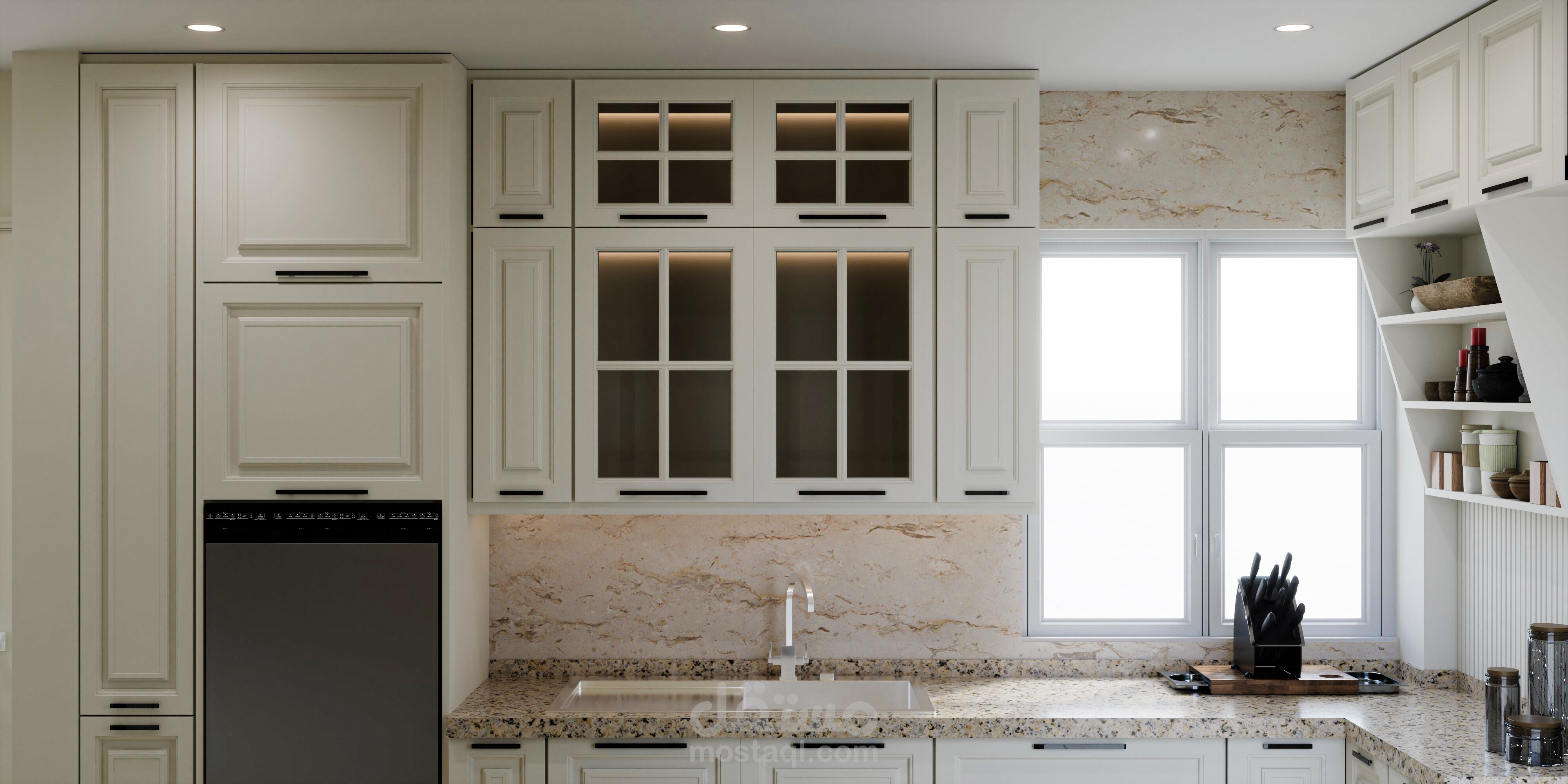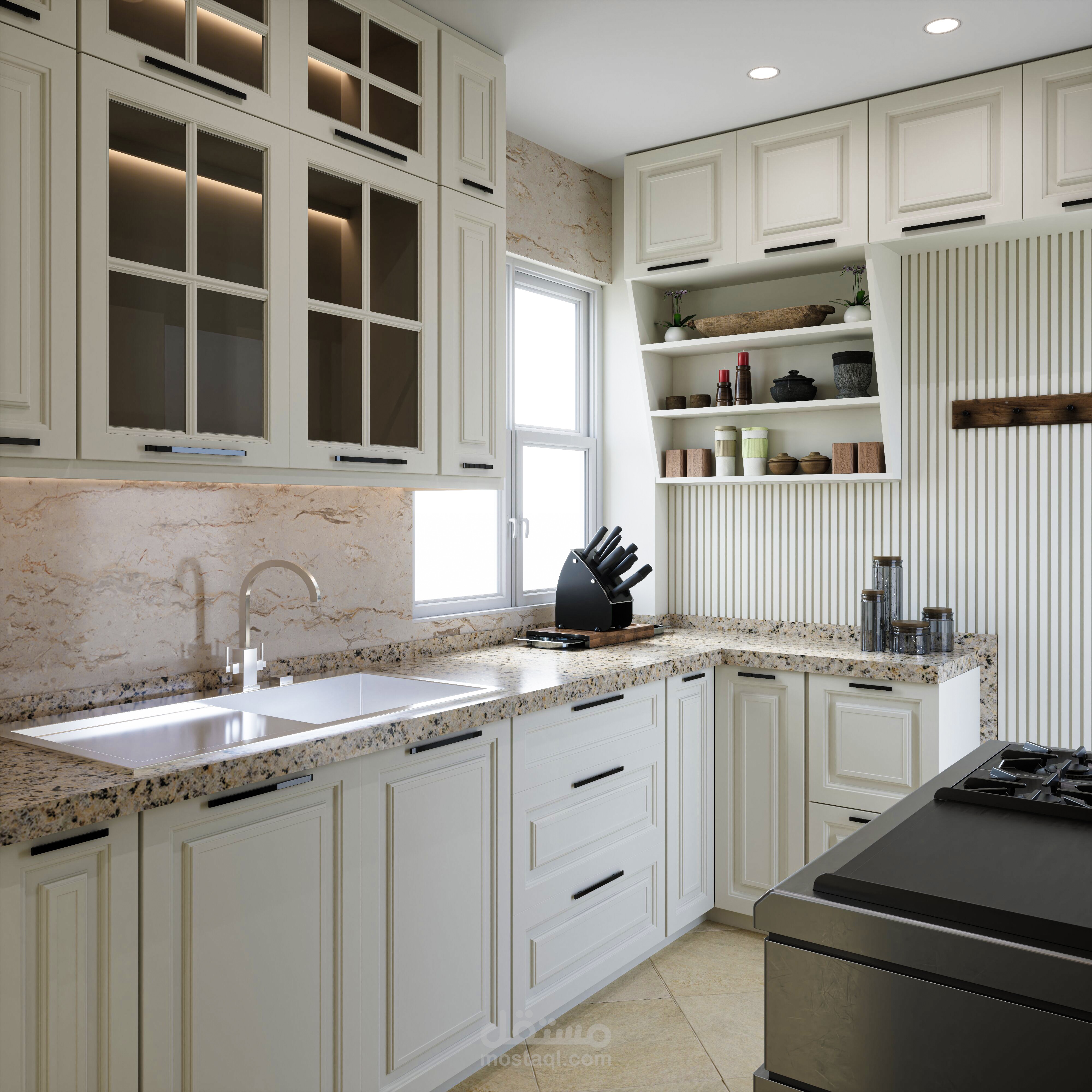 تصميم مطبخ صغير 12 متر مربع بستايل neo classic