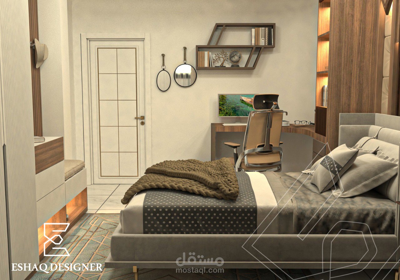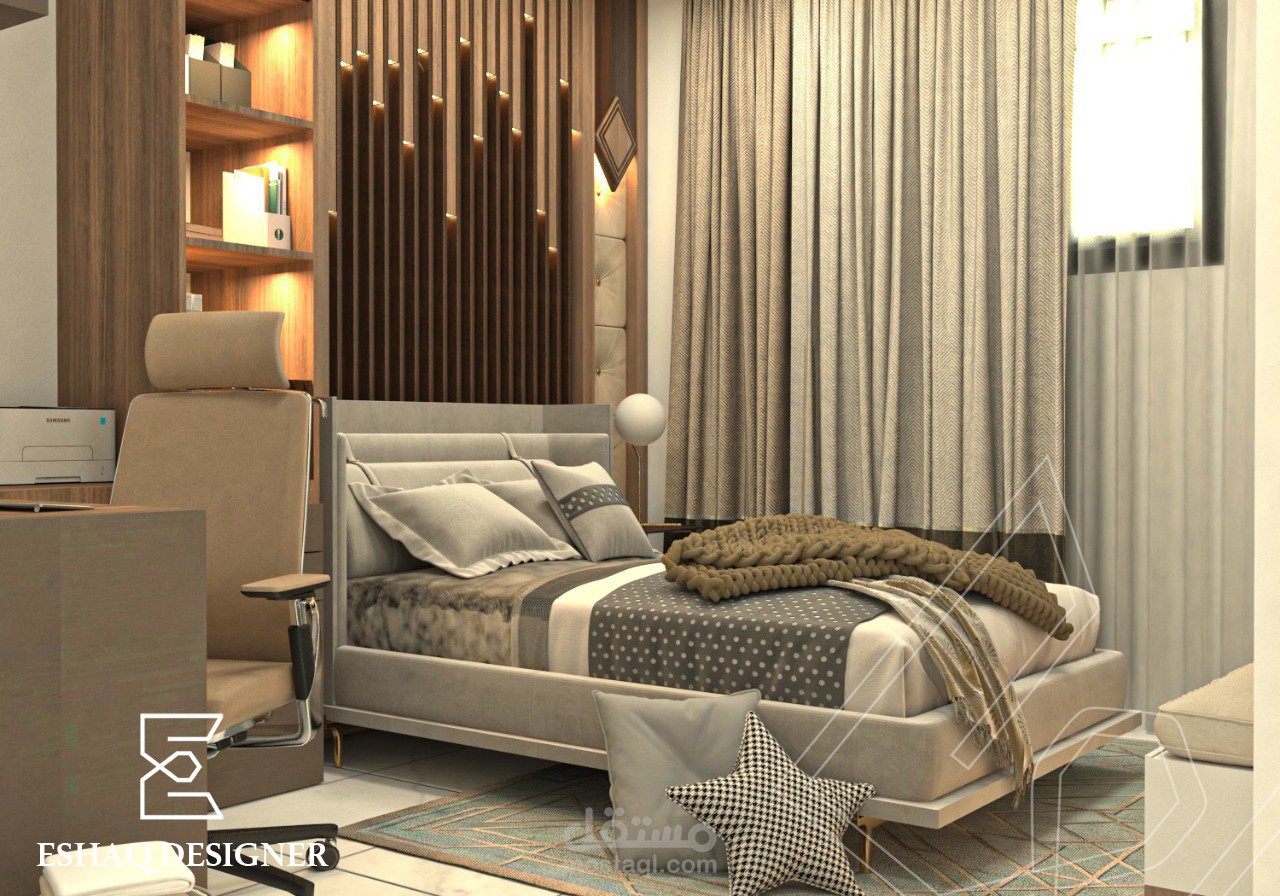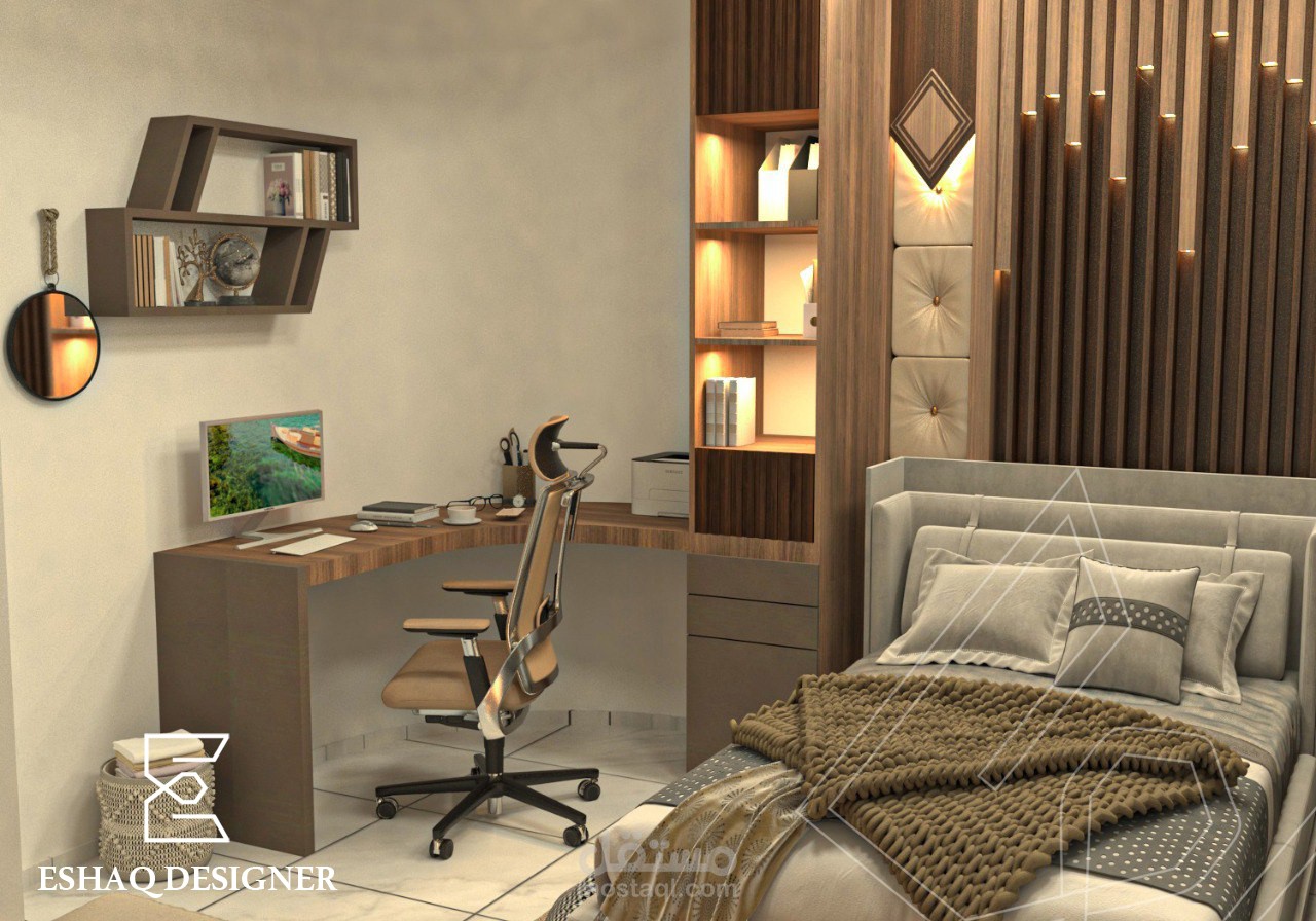 تصميم غرفة نوم شباب - تصميم داخلي - بأستخدام برنامج ال3dmax & v-ray ووضع الخامات والأضائة بشكل المناسب وتصميم صمم بكل دقة .