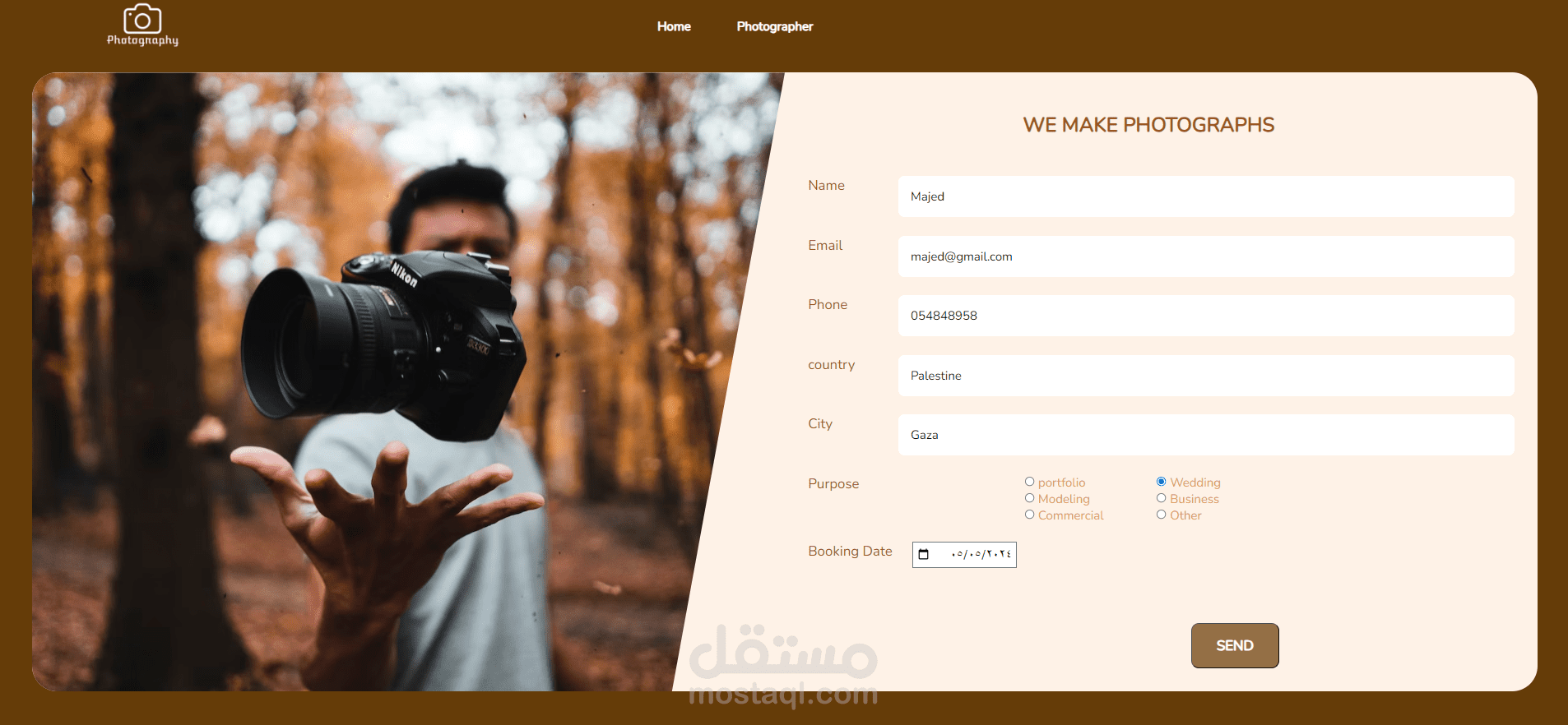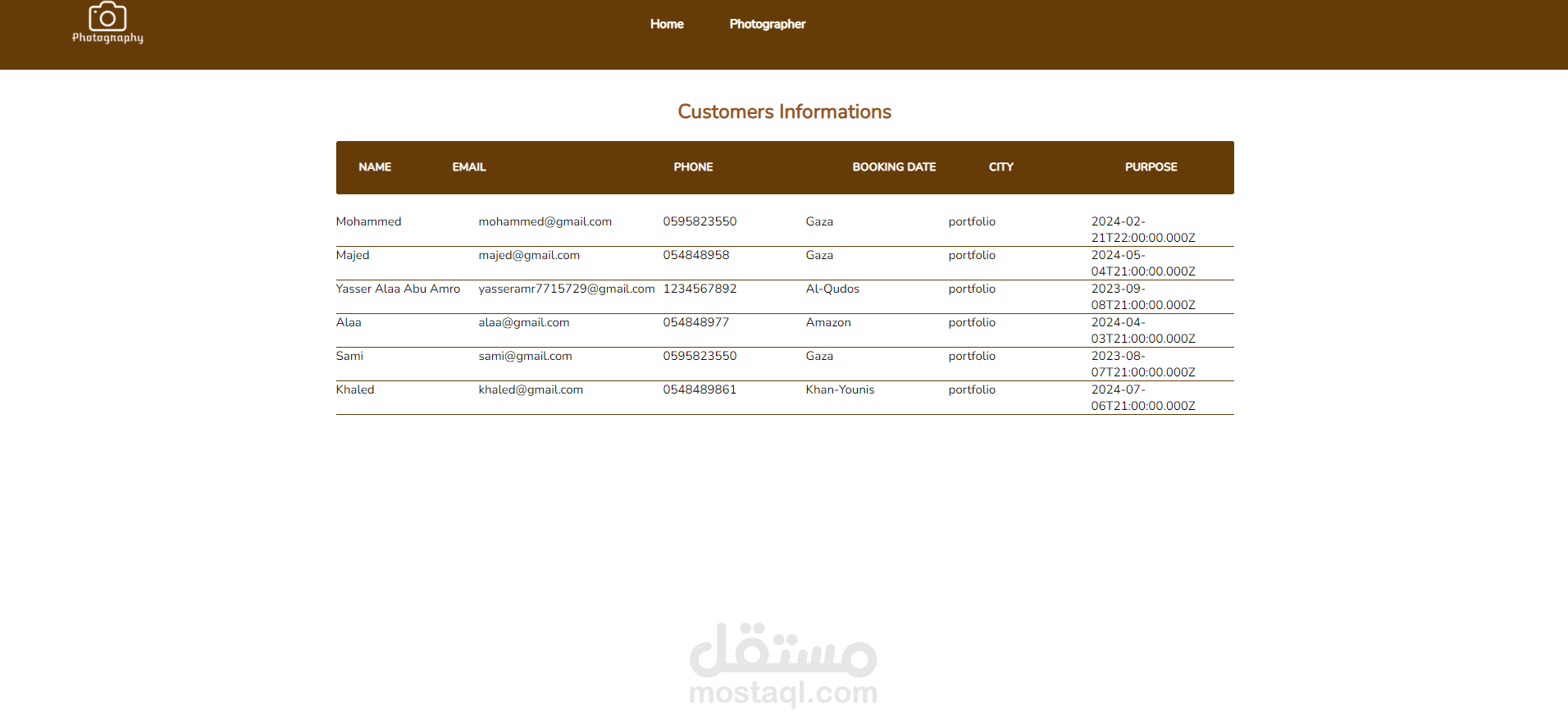 This is an Express and postgressql web application that aims to provide an photographers. This project through which a photographer is booked for a customer by submitting a reservation request where the photographer has several clients.