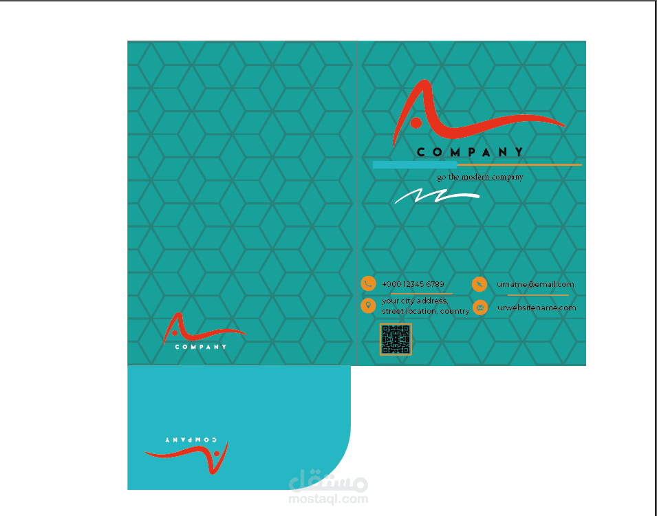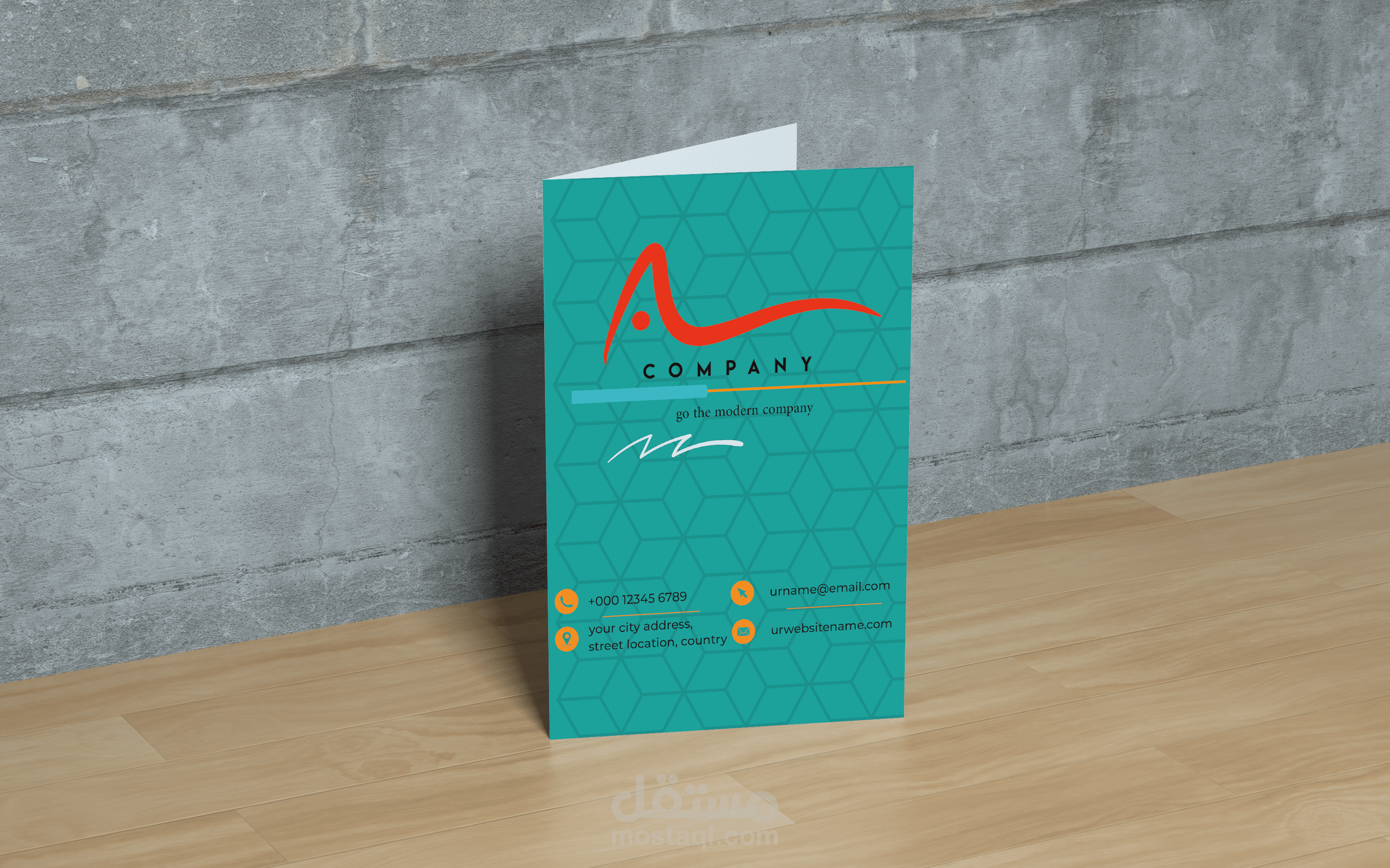 تم تصميمه باستخدام برنامج ادوبي اليستريتور وتم استخدام ألوان الهوية البصرية المخصصة للشركة