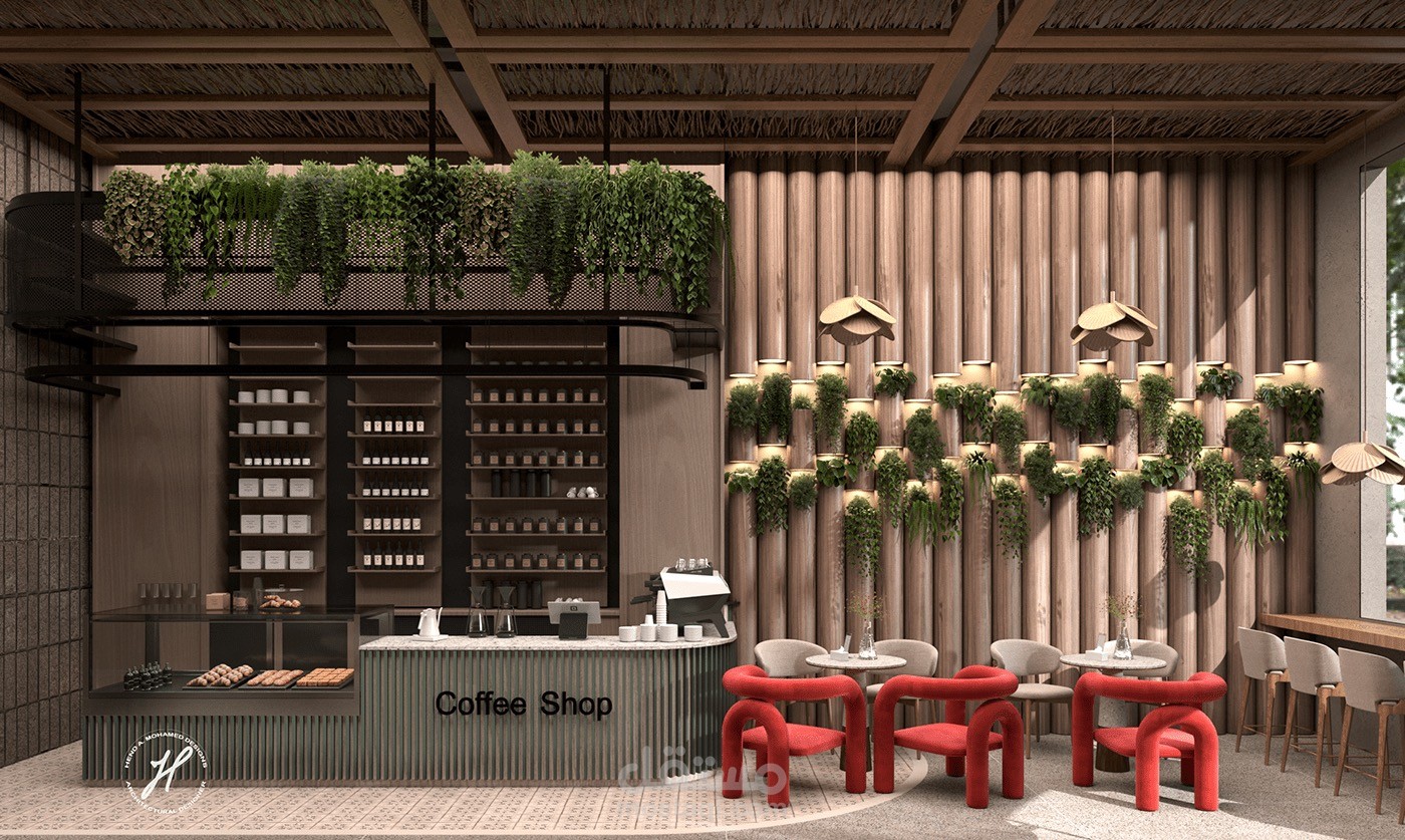 تصميم داخلي لكافيه باستخدام العناصر الحديثه ف التصميم