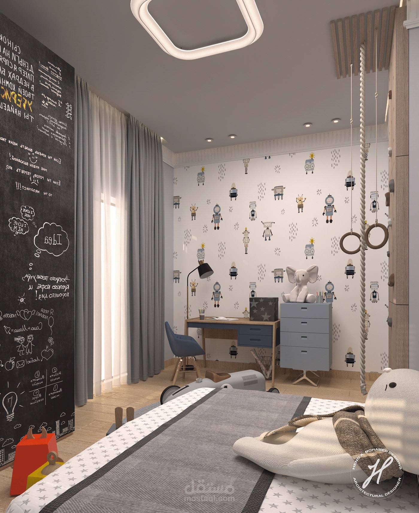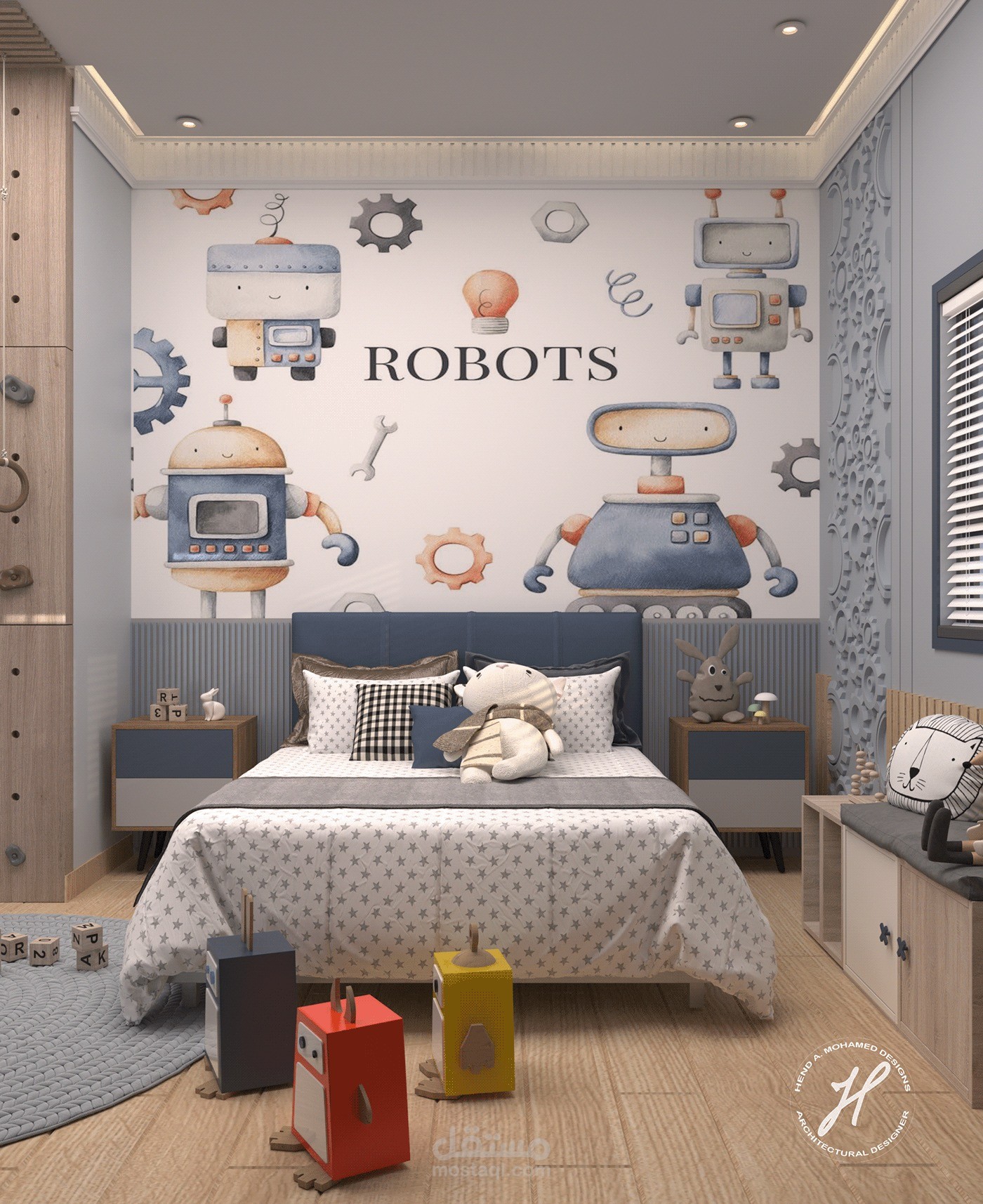 تصميم لغرفه طفل باستخدام اللون اللبني حسب طلب العميل