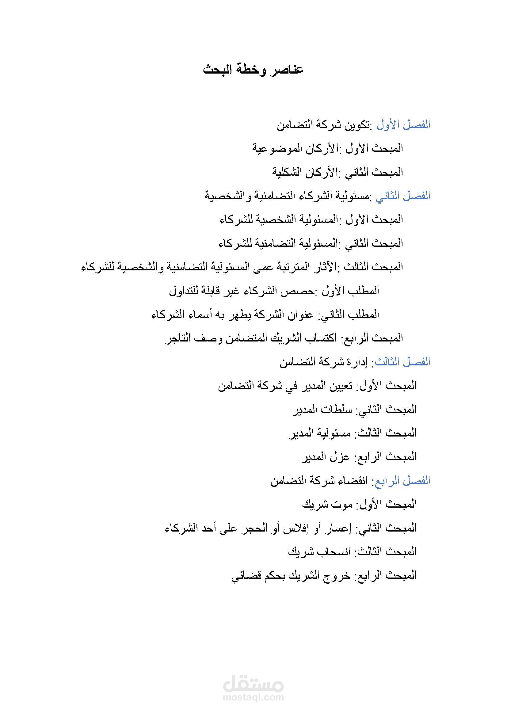بحث بعنـــــوان : النظام القانوني لشركة التضامن