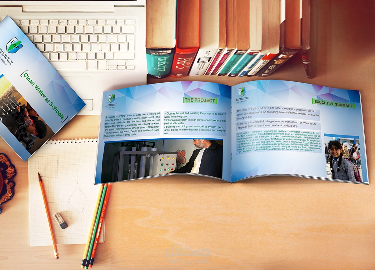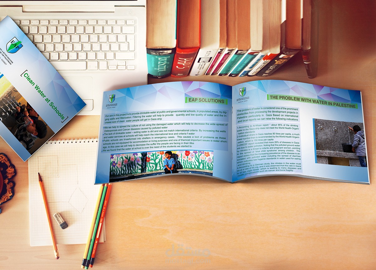تصميم بروشور لمؤسسة دولية تعمل فى قطاع غزة متخصصة فى توفير المياه