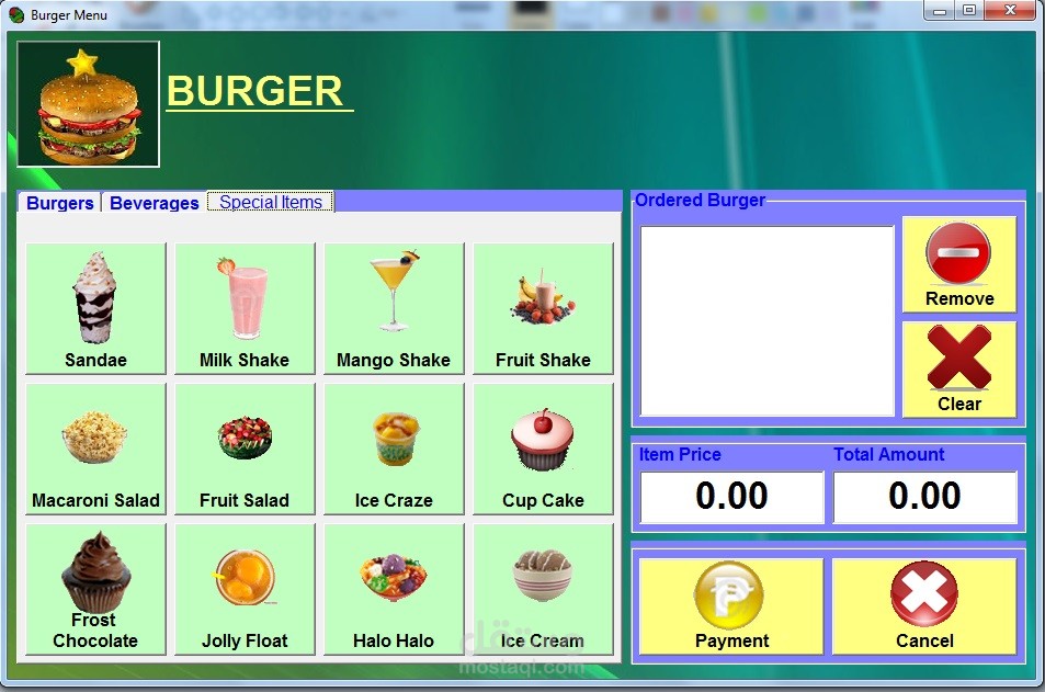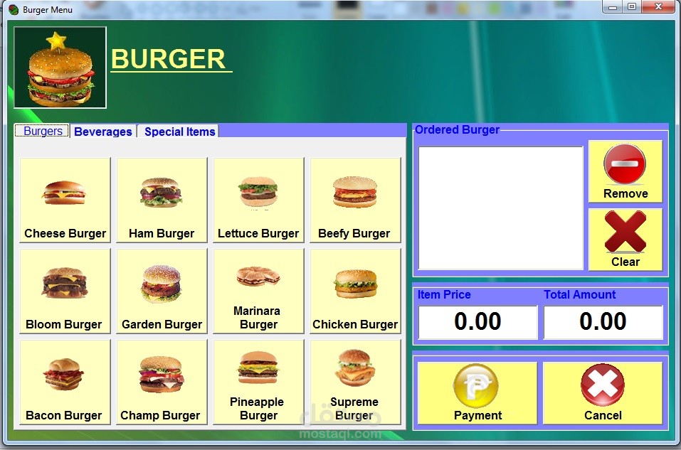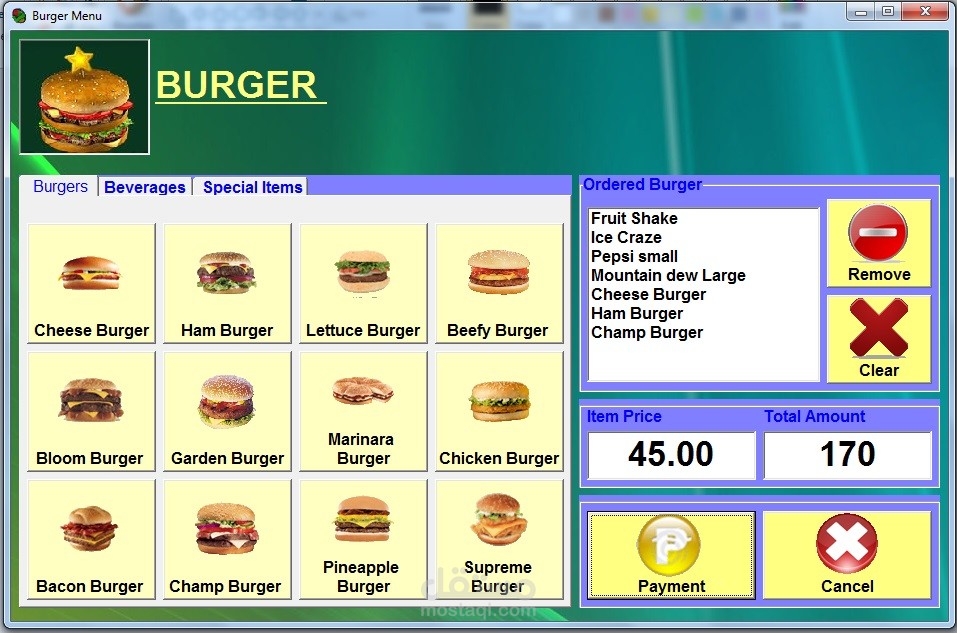 برنامج محل طلبات البرجر (Burger Ordering System)