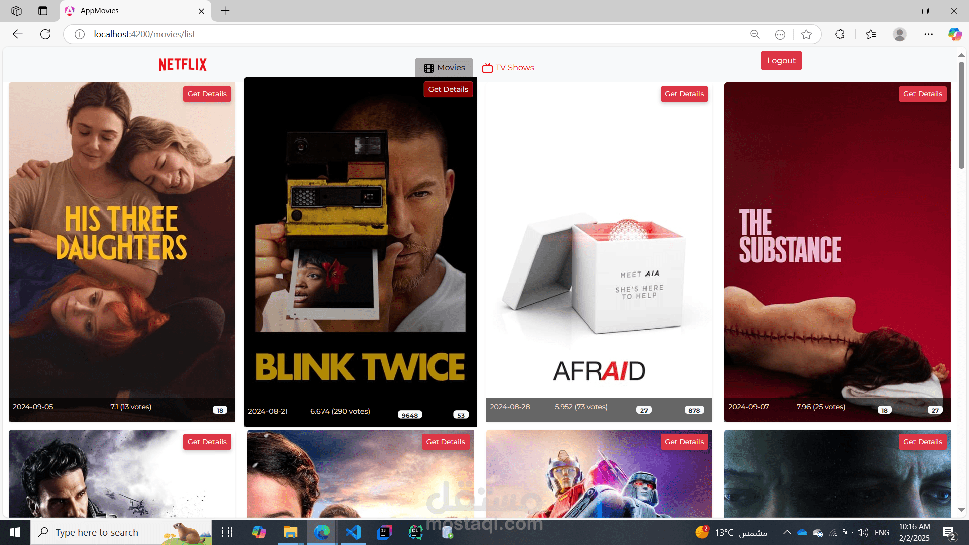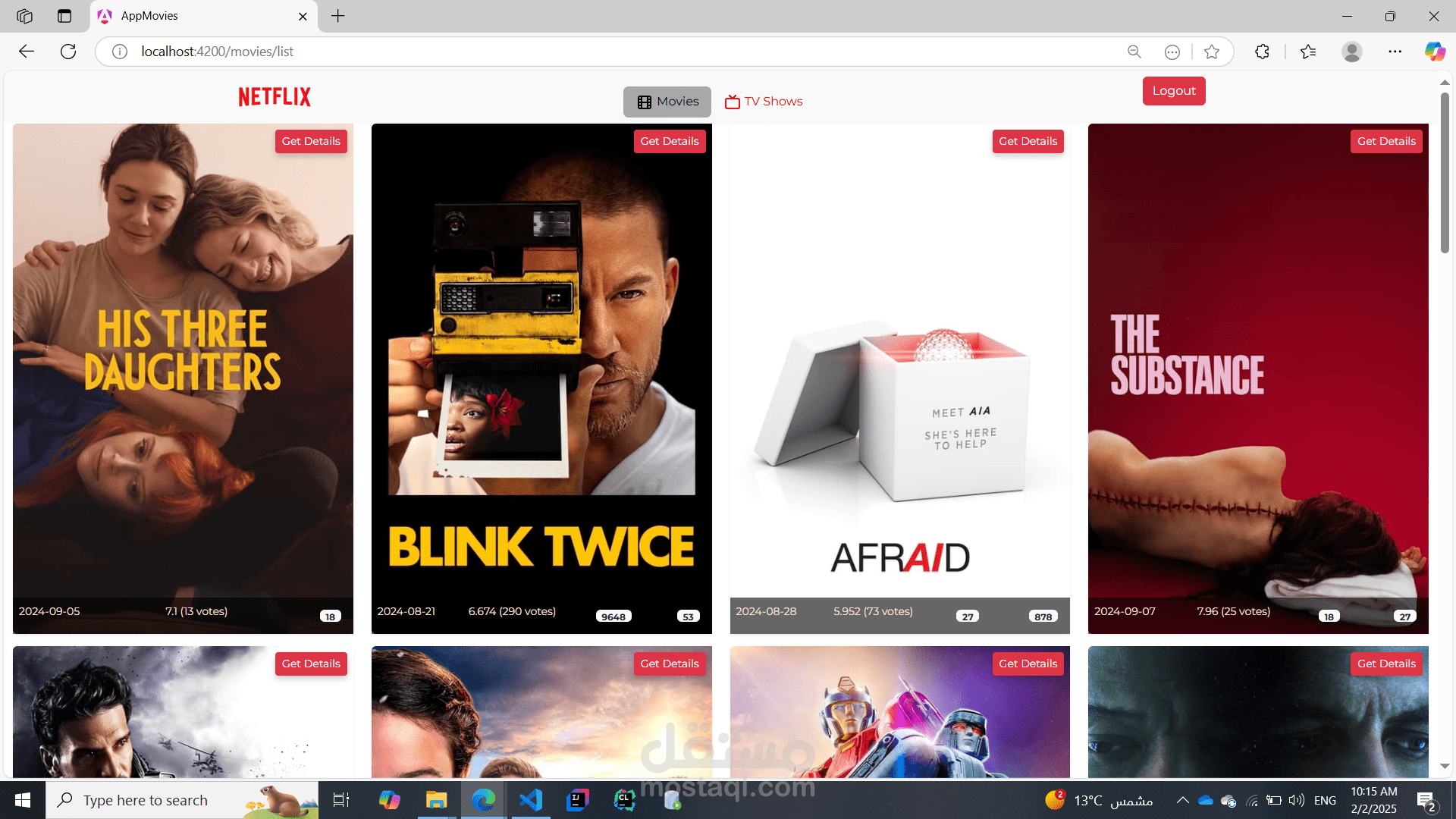 This Movies & TV Shows web application is ideal for movie enthusiasts and binge-watchers who want an engaging platform to explore their favorite content. With Angular's robust features and a responsive design, it provides a smooth and efficient user experience, making it easy to stay up-to-date with the latest releases.