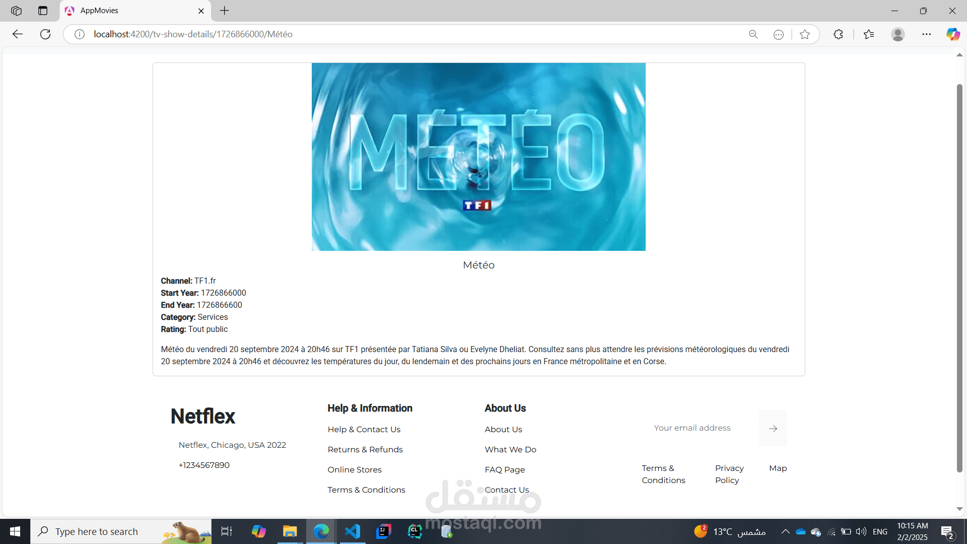 The Movies & TV Shows Web Application is a dynamic, interactive platform built with Angular that enables users to explore and discover the latest movies and TV shows. The app provides detailed information, including synopses, cast details, genres, ratings, trailers, and release dates, offering a complete entertainment browsing experience.