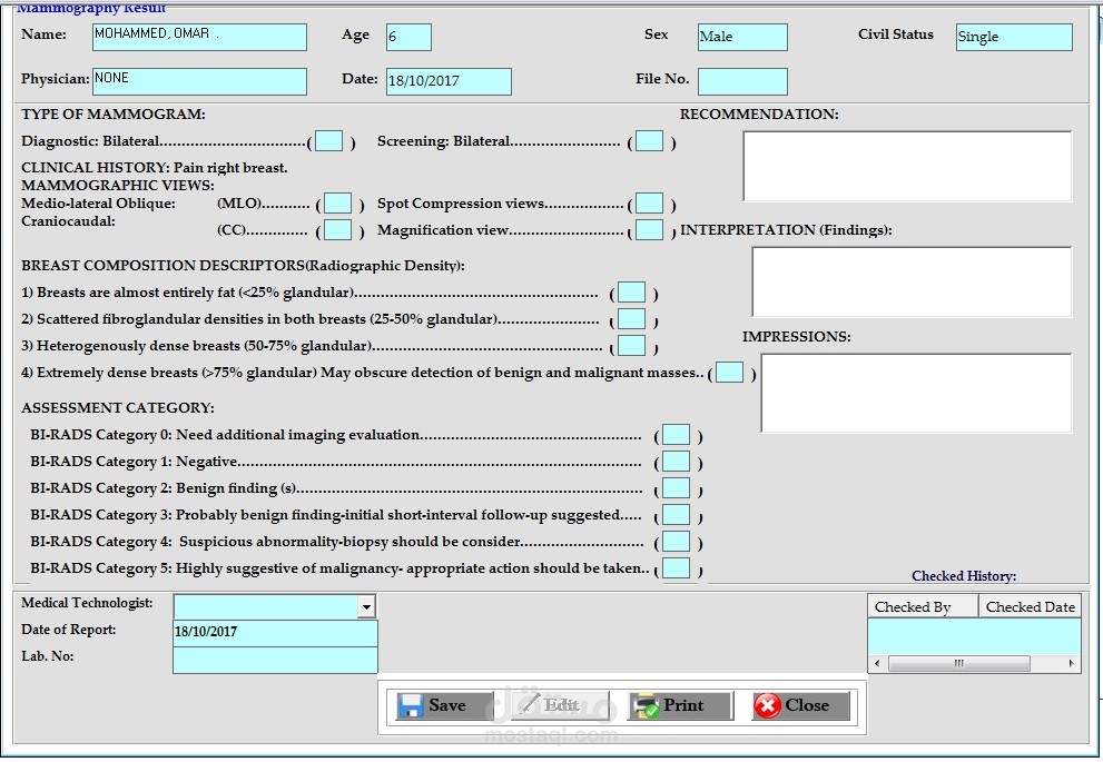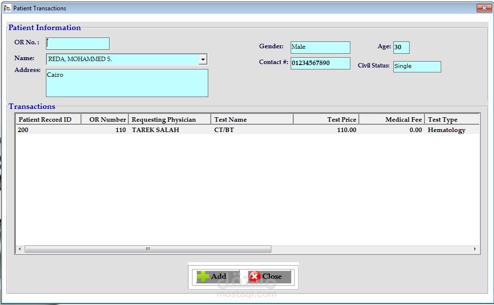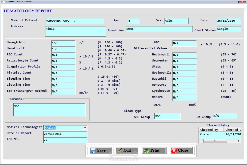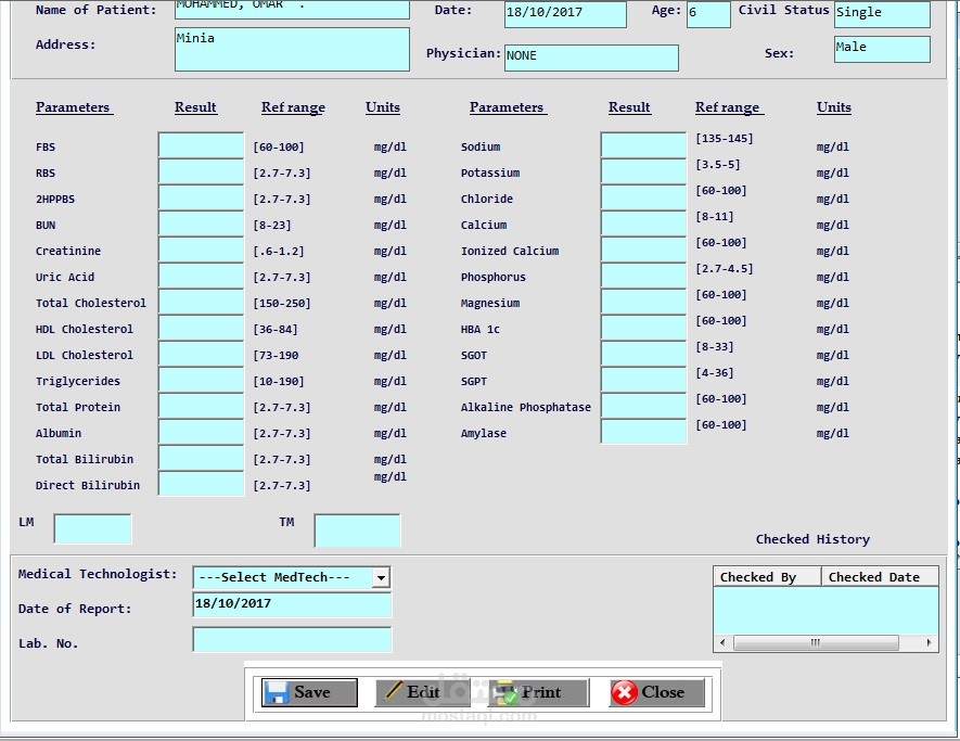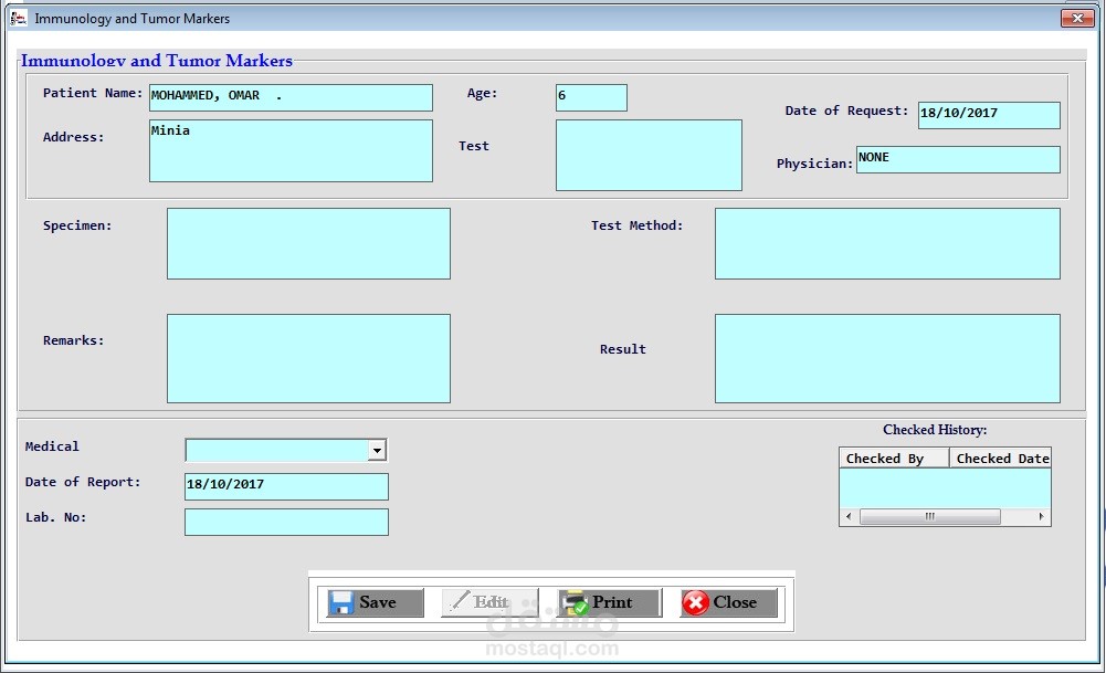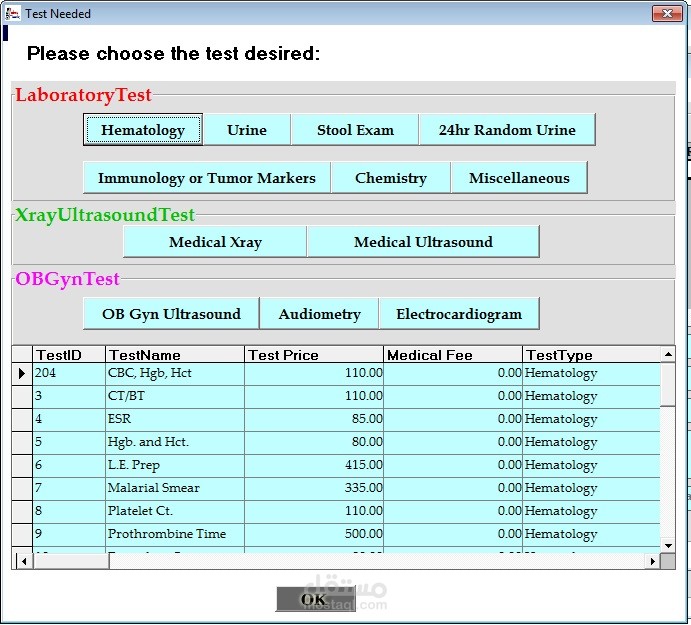 برنامج ادارة معمل التحاليل الطبية والاشعة (Medical Laboratory Tests and Rays)