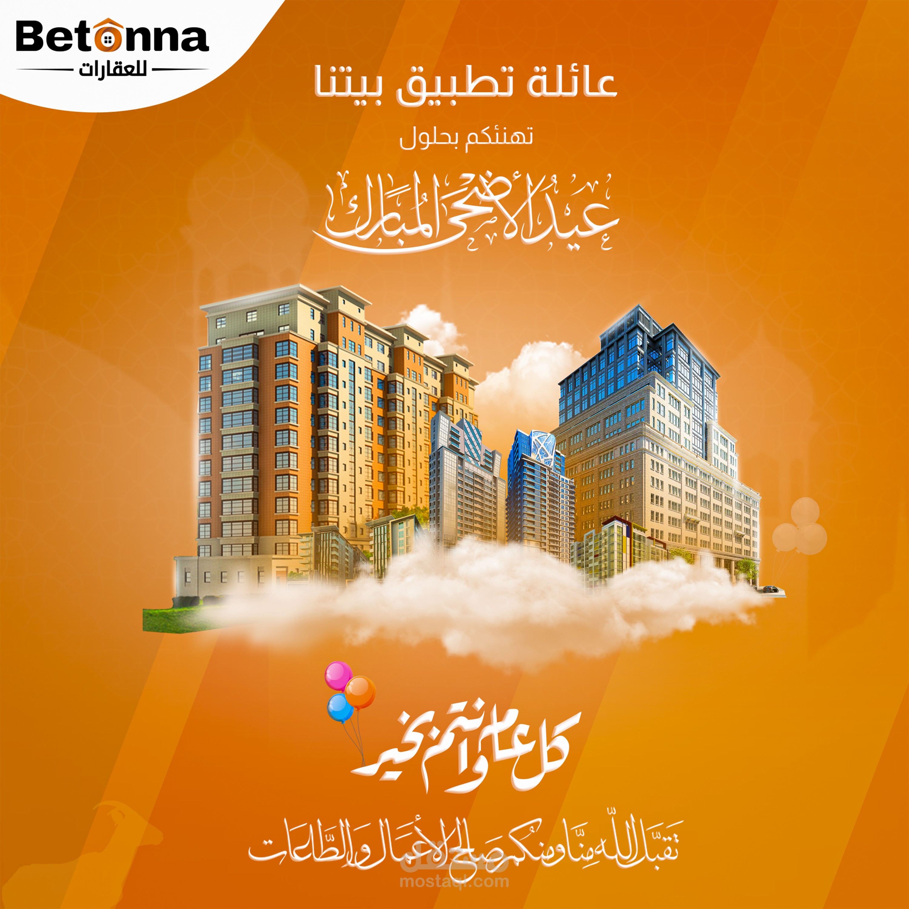 تهنئة بمناسبة عيد الأضحى لمستخدمي تطبيق بيتنا للتطوير العقاري