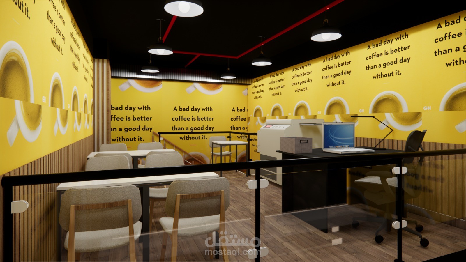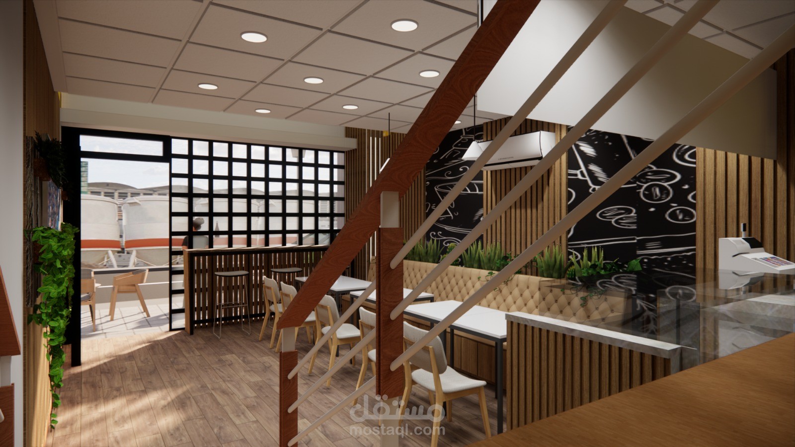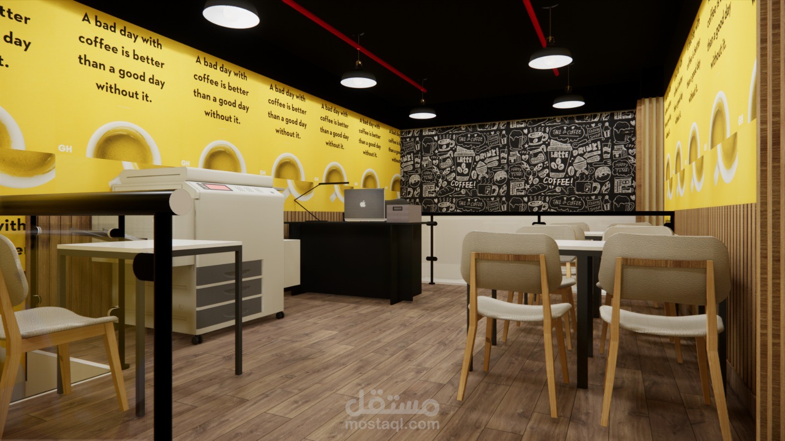 Interior design of a small coffee shop