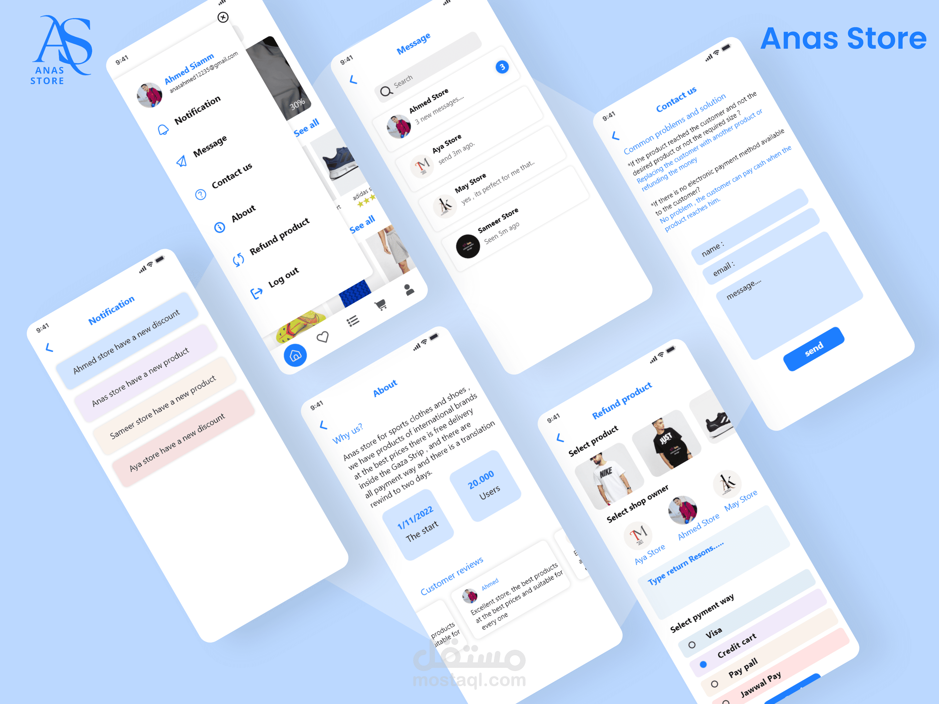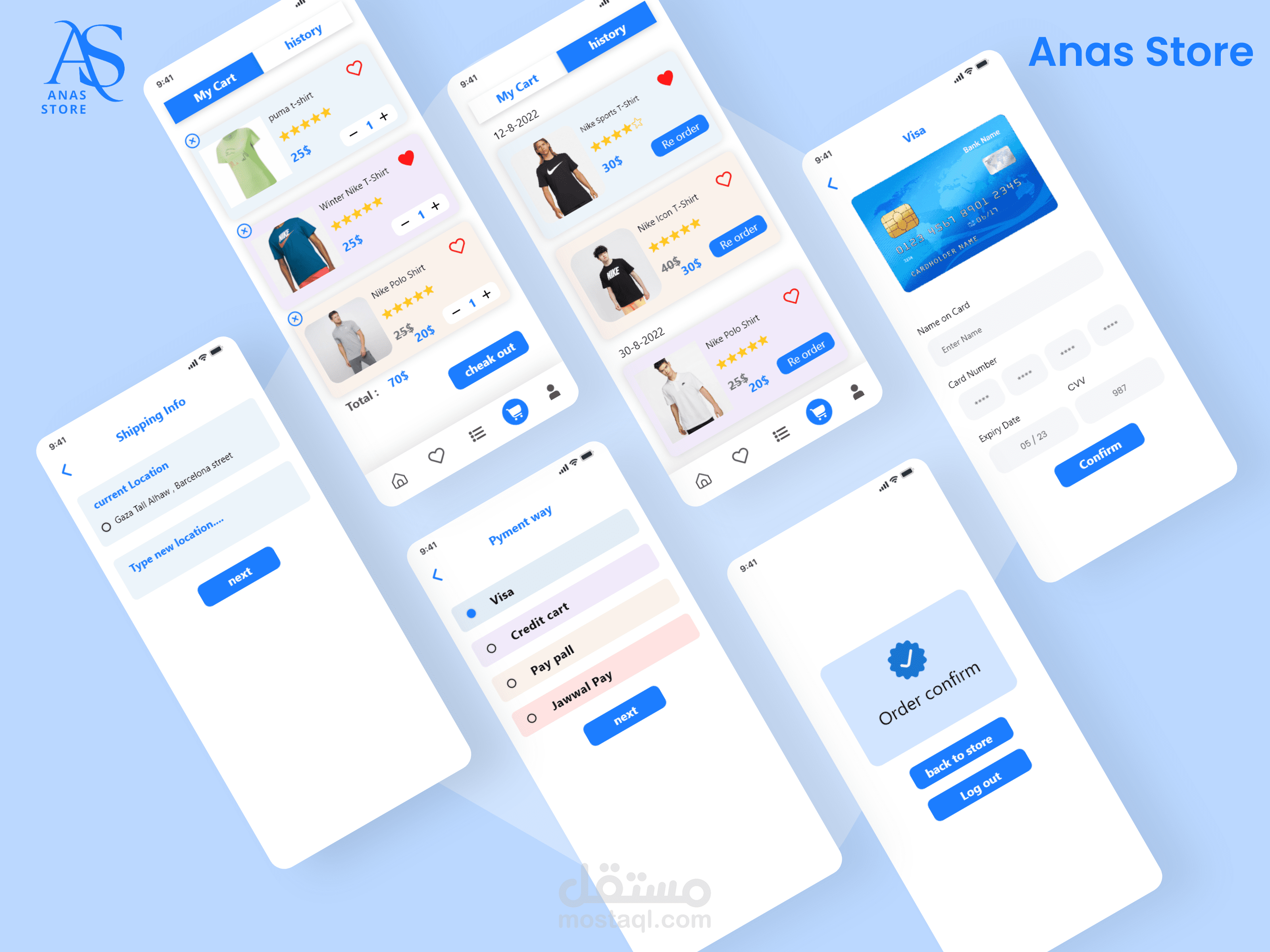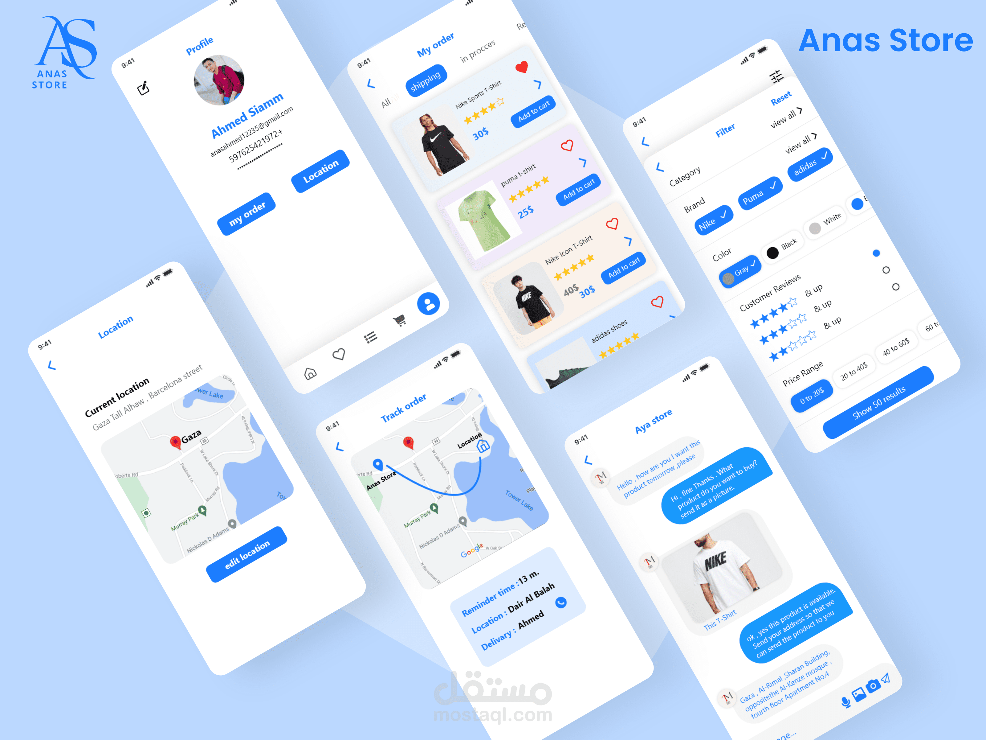 تصميم UX-UI لتطبيق متجر الكتروني باللغة العربية ( متجر لبيع الملابس والأحذية الرياضية)