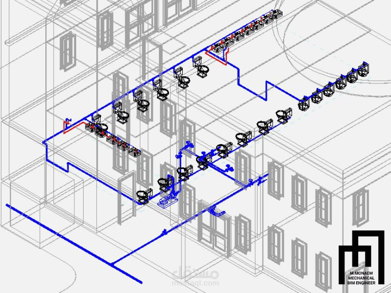 6) Water supply system design and drafting using REVIT MEP.