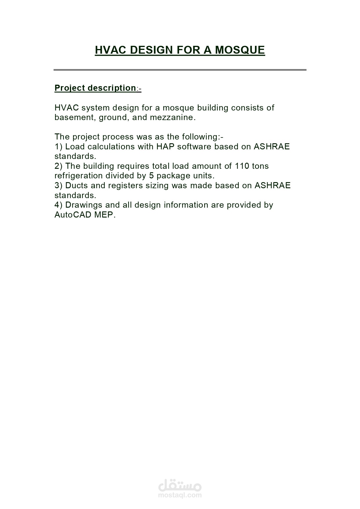 HVAC system design for a mosque building consists of basement, ground, mezzanine: