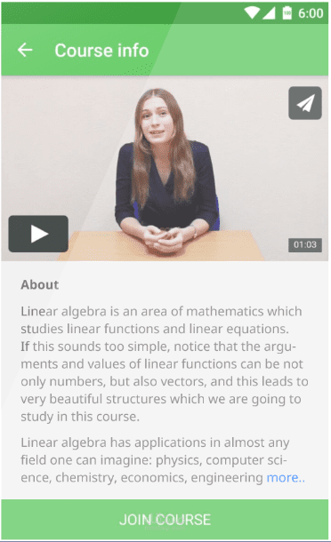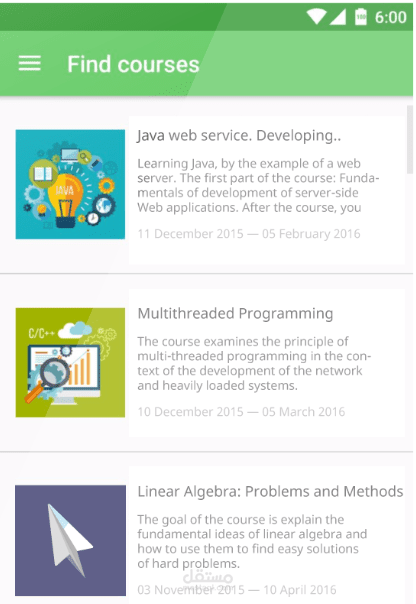 هو تطبيق جذاب يعمل على منصه اندرويد فكره عمله قائمه على ايجاد الكورس المناسب لك والتسجيل فيه لمشاهده الكورس والتعلم عن طريق الموبايل.