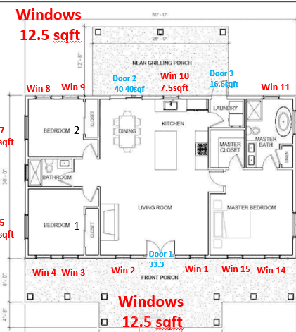2)The house requires 2 tons refrigeration heat pump with 1000 cfm.