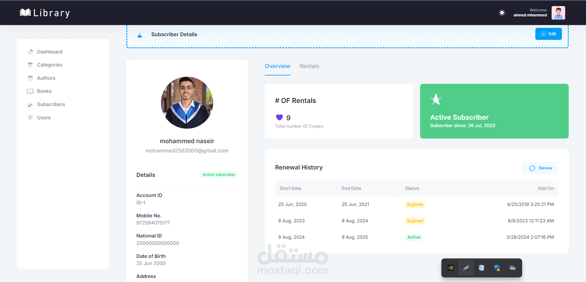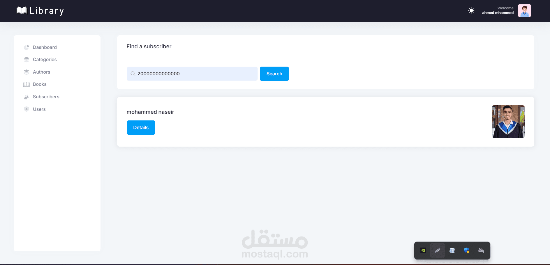 سيتسم ادارة حجوزات الكتب ، يتم فيه حجز الكتب واستعارتها ويوجد بروفايل لكل زبون داخل المكتبة