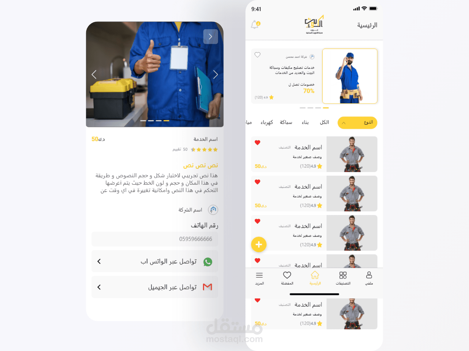 تواصل مباشر: يمكن للمستخدمين التواصل مباشرة مع مقدمي الخدمة عبر الواتس اب والايميل ,مما يتيح فهم أفضل لتفاصيل الخدمة وترتيبات العمل.