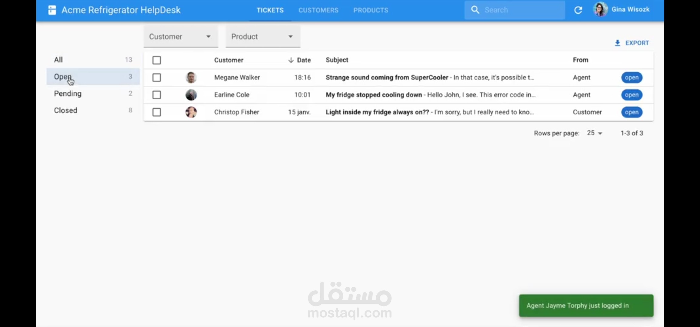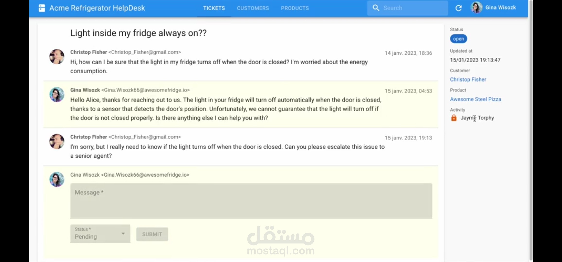 نظام دعم فني حيث يمكن للعميل عمل تذكرة والتواصل مع الدعم الفني لحل المشكلة