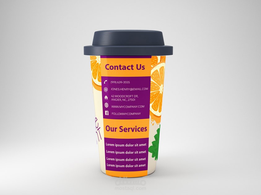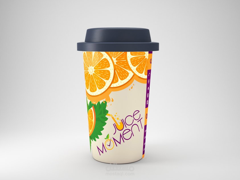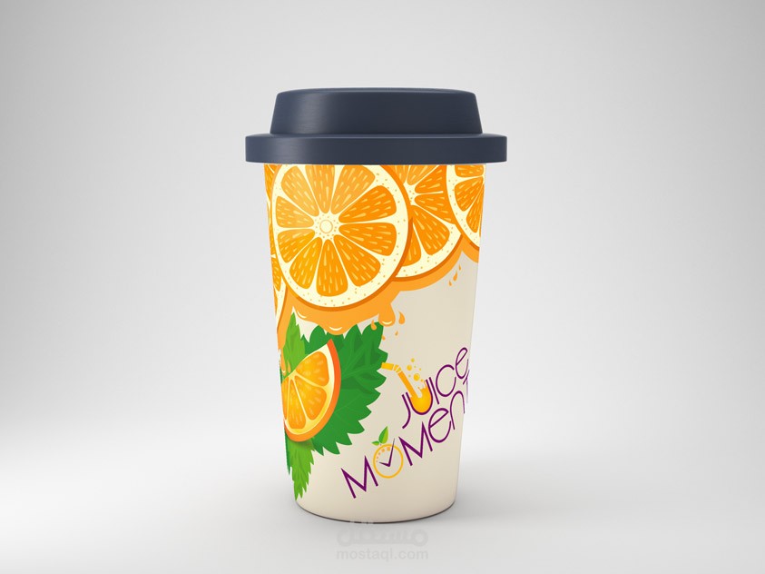 تصميم واجهة كأس عصير للبرتقال ( تجريبي ) بحيث يشمل لوجول الشركة و يستخدم كدعاية
