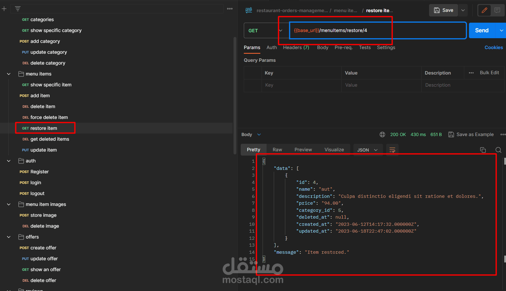 Soft-deleted menu items: The application provides routes for retrieving, restoring, and permanently deleting soft-deleted menu items, which can be useful for managing deleted data.