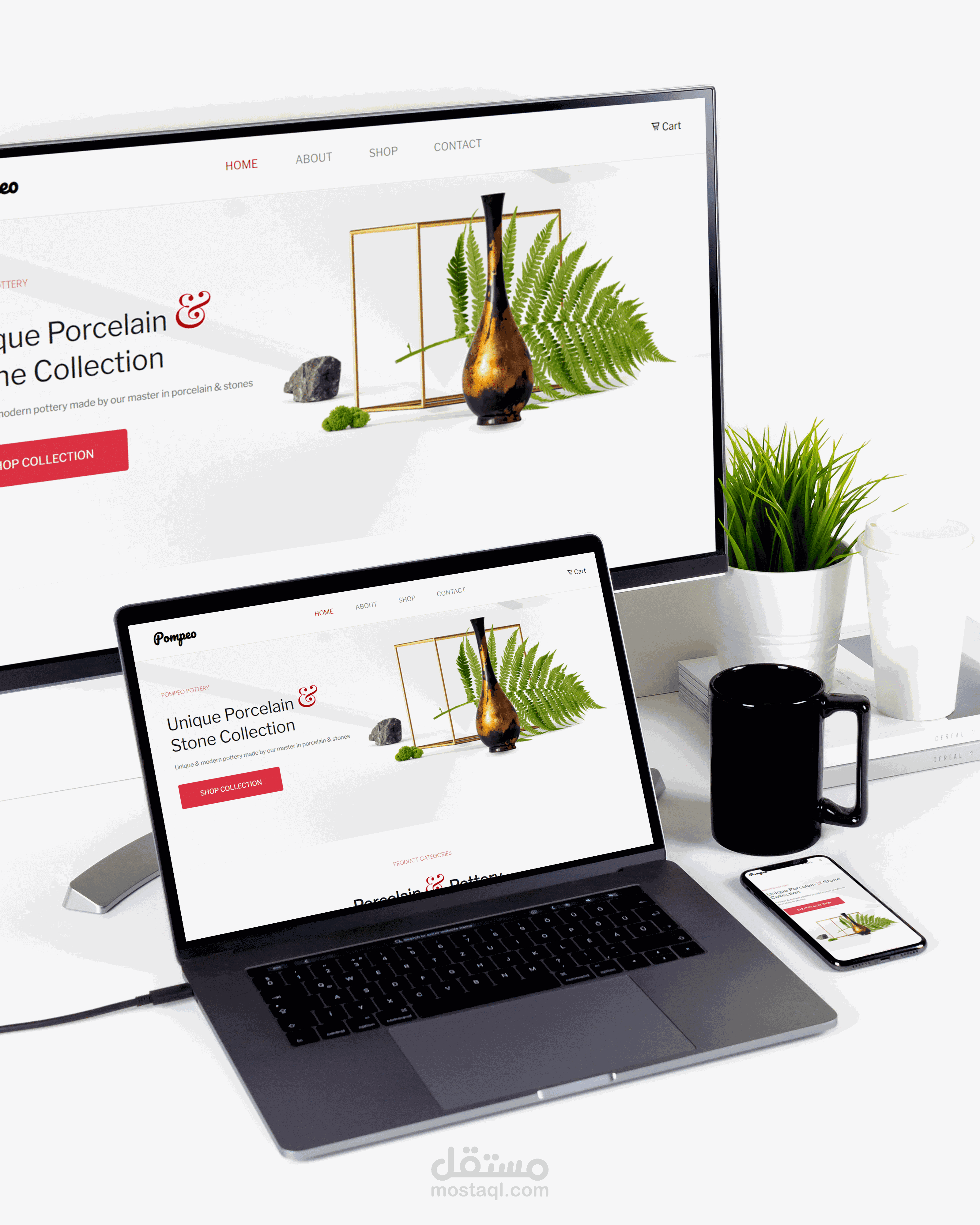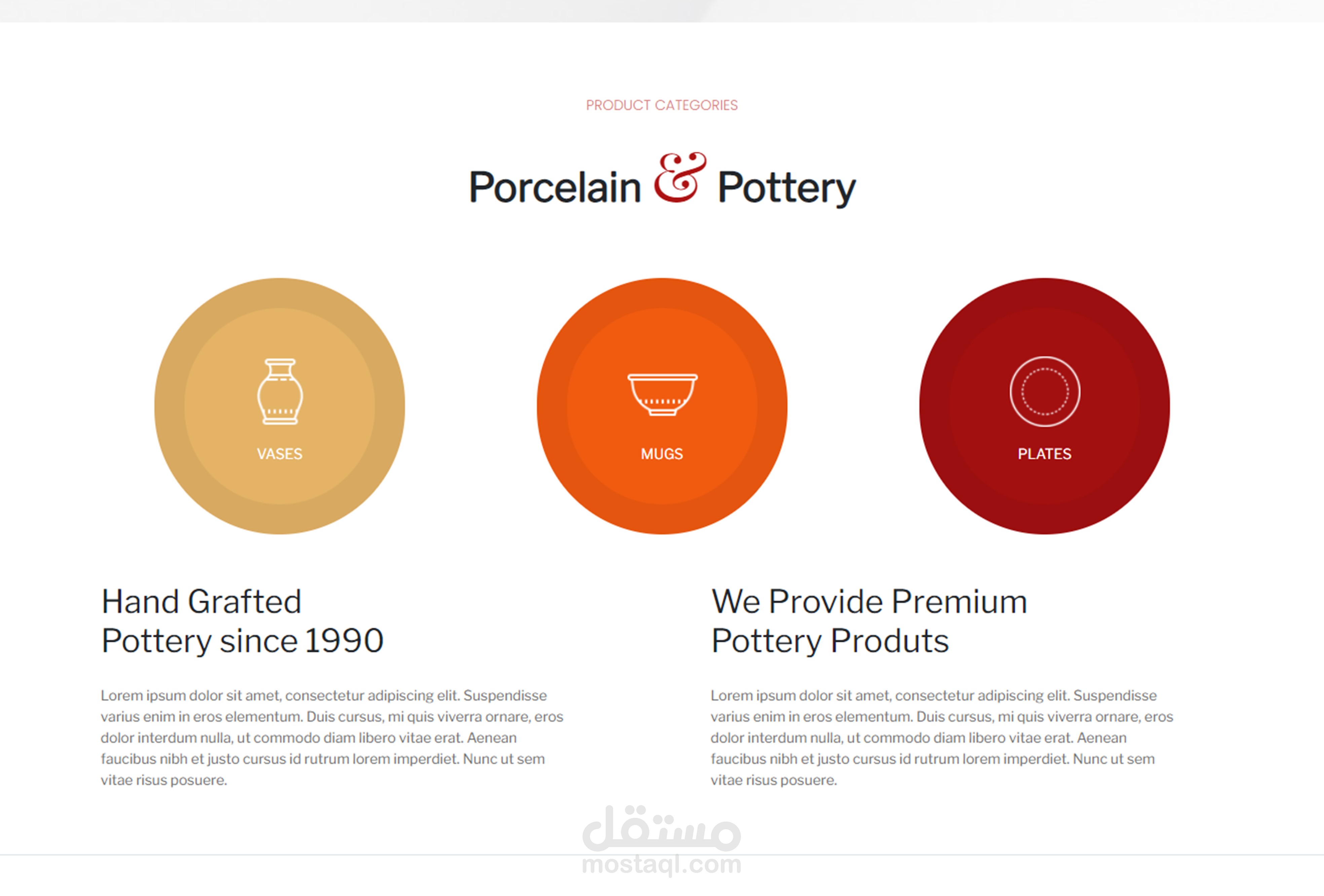 قالب للتجارة الإلكترونية في صناعة الفخار والسيراميك - هذا القالب فريد ونظيف وبسيط. إنه حل ويب مثالي لدروس صناعة الفخار الحديثة وورش صناعة الفخار ومتاجر السيراميك ومتاجر لوازم الفخار والفعاليات. كما أنه مثالي لمتاجر الخزف والمشغولات اليدوية: الأطباق والأكواب والأطباق والأوعية.