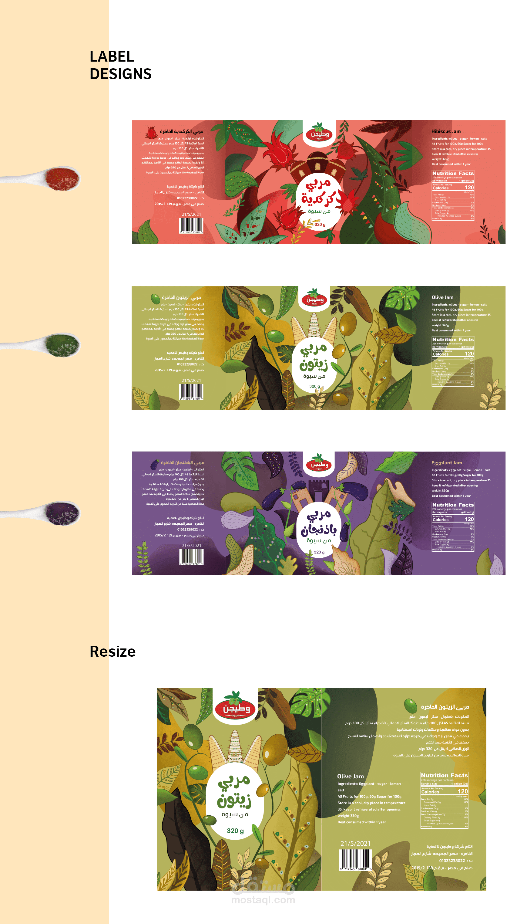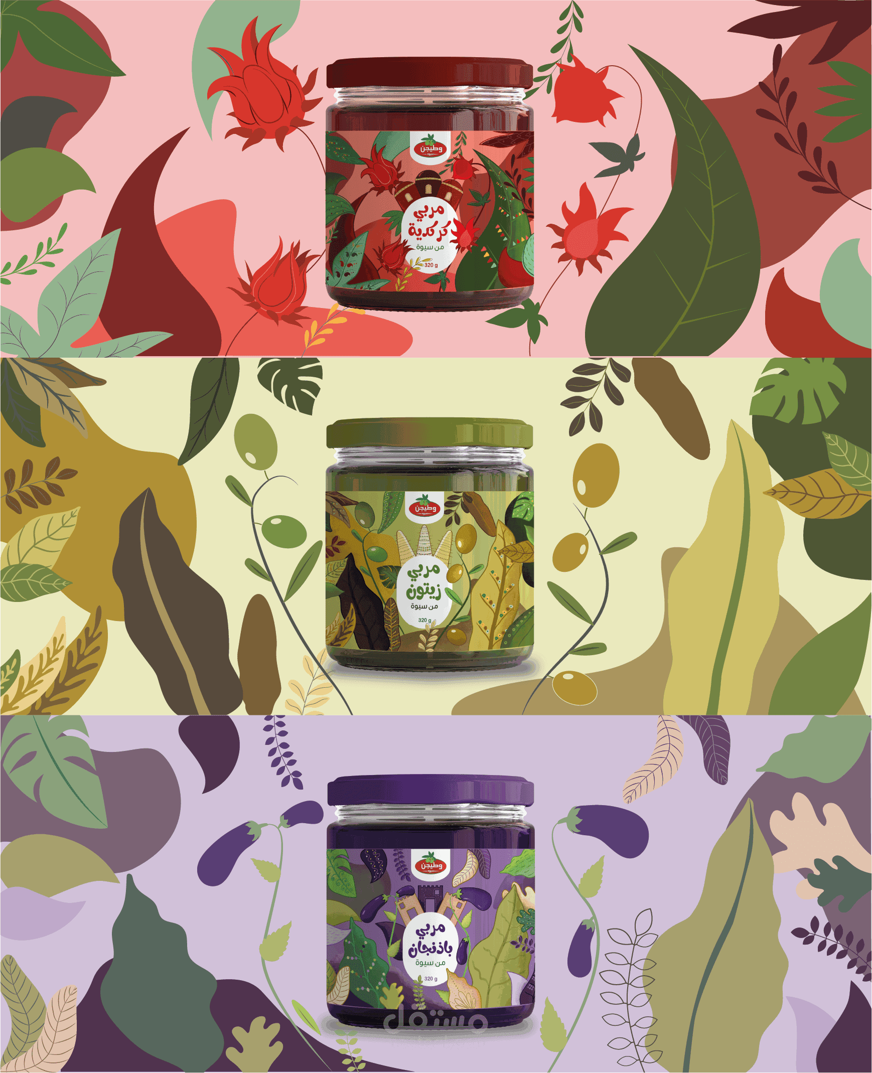 Designing the packaging of “wateegn siwa jams” by creating designs using leaves and plants according to each Flavour to indicate that it is a natural product. and merging the leaves with the simple motifs of Siwa folklore, using Siwa houses and pigeonry in each taste.