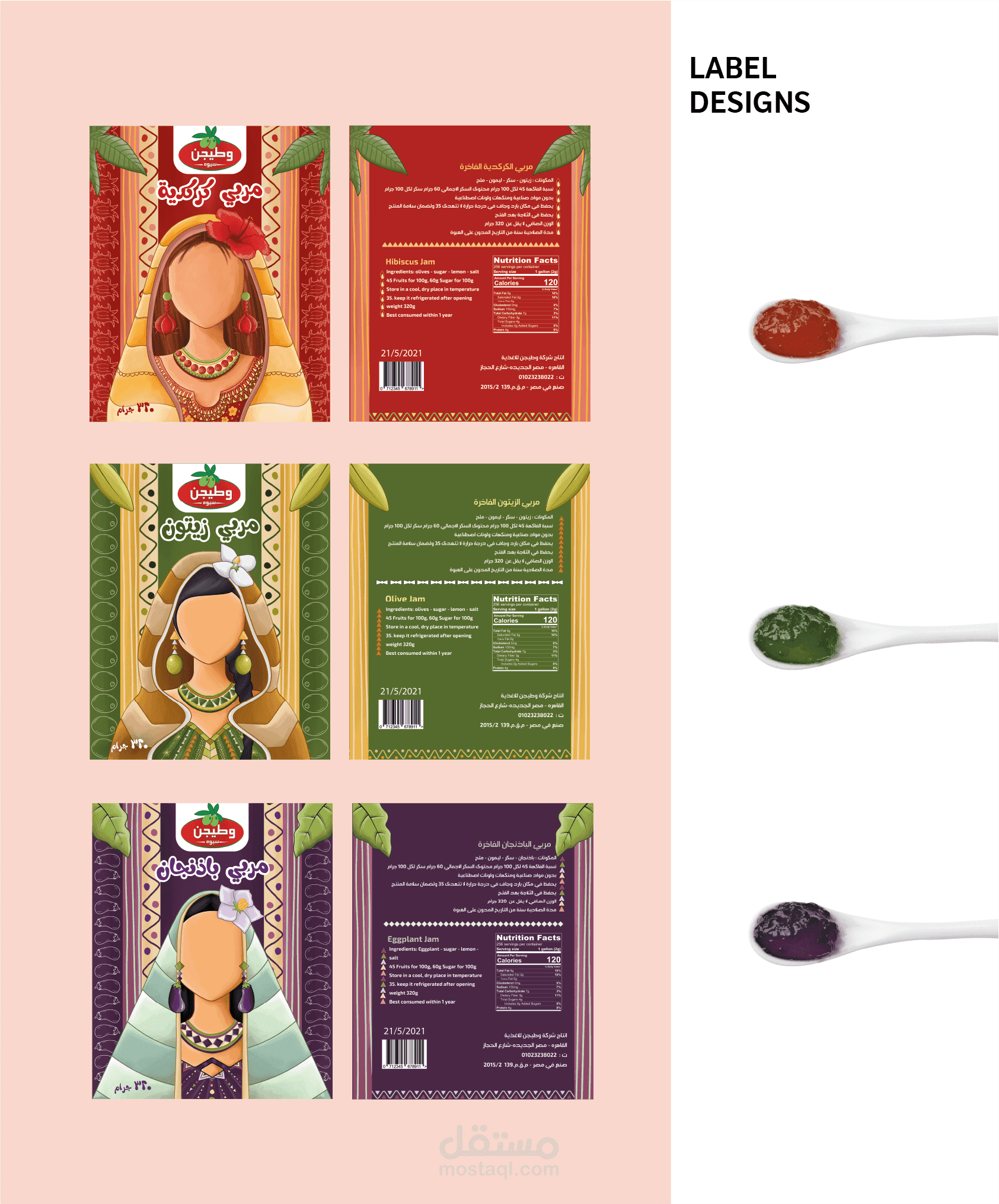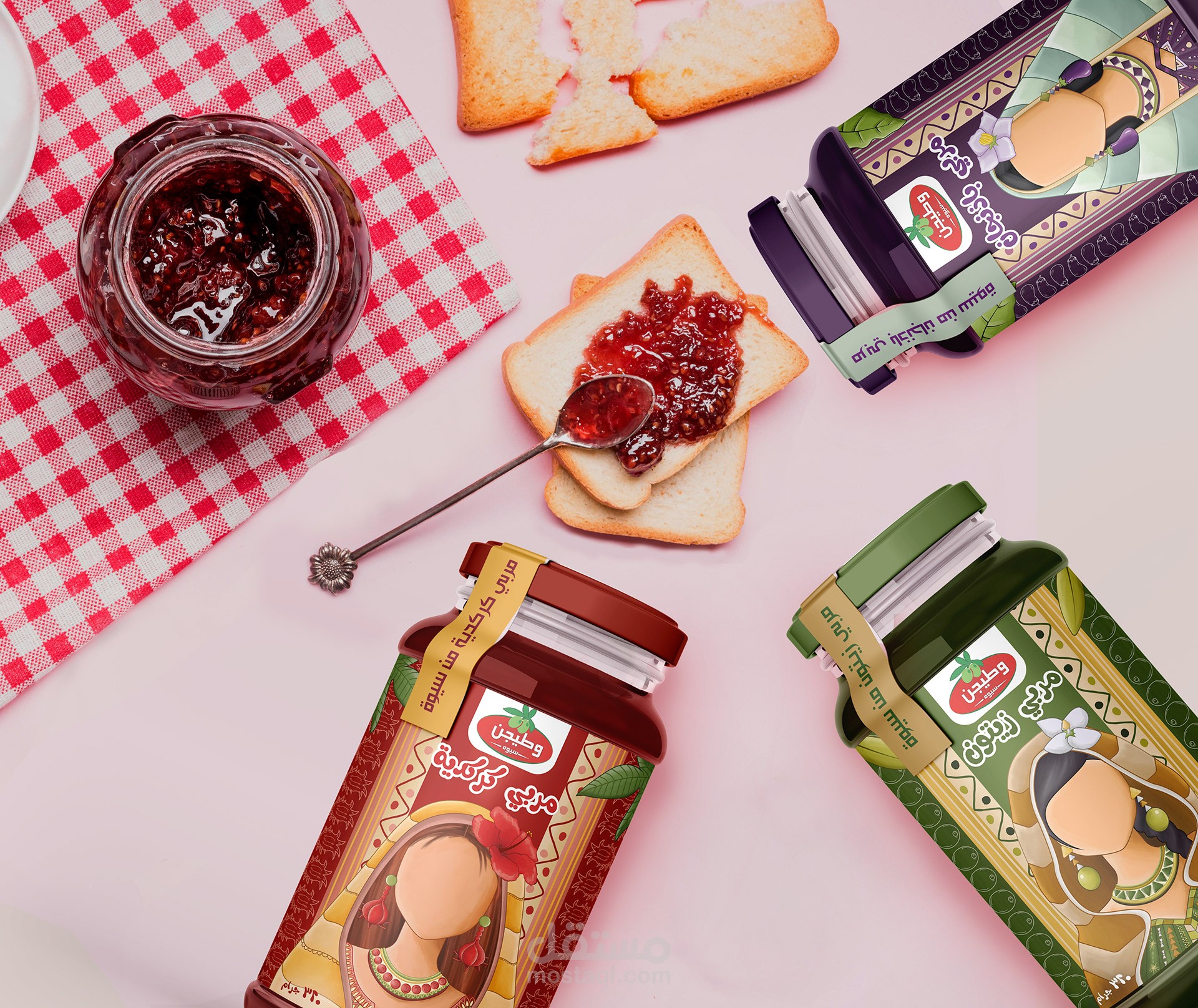 Designing unofficial packaging of "wateegen siwa jams" by creating a siwa women character in each flavor depends on siwa folklore: