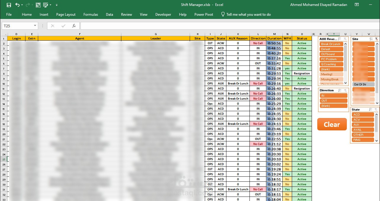 ملف اكسيل لادارة الموظفين لاستقبال المكالمات فاحدي شركات الكول سنتر وخدمة عملاء الدعم الفني يحتوي علي ادوات ومعادلات لإدارة الشيفت بشكل كامل