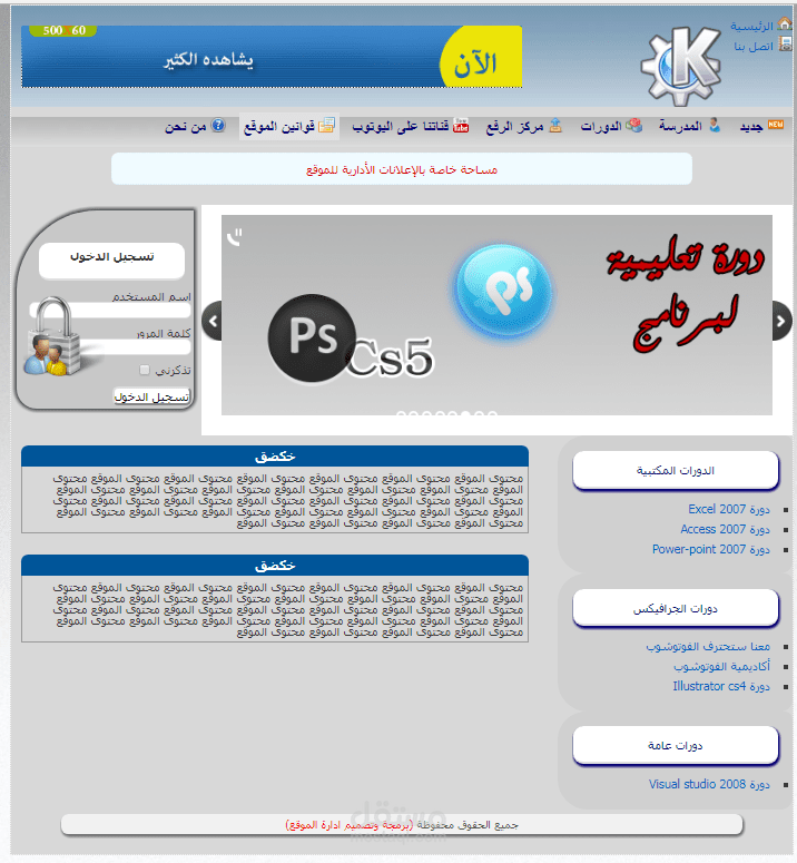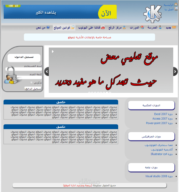 تصميم وتكويد قالب موقع تعليمي يهتم بتقديم دروس ودورات مرئية في مختلف المجالات البرمجية
