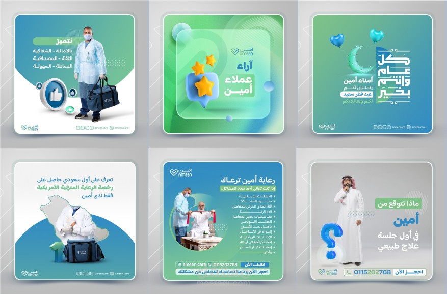 مشروع تصاميم سوشيال ميديا خاص بمستشفى أمين الطبي.