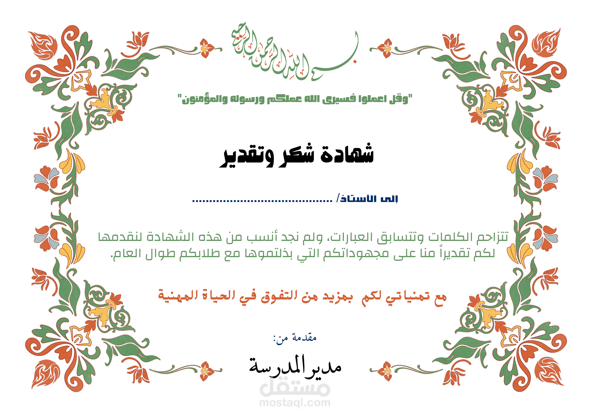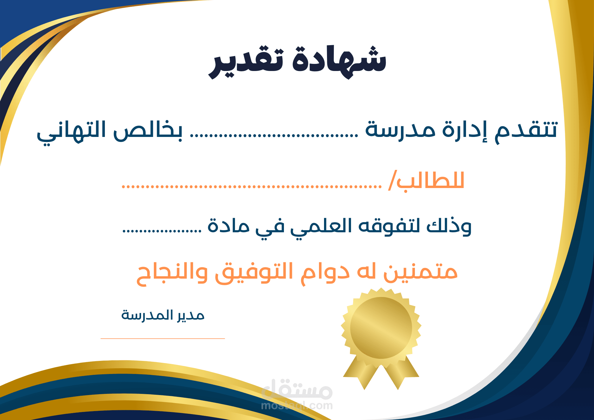 شهادة تقدير للطلاب المتفوقين وشهادات تقدير للمعلمين والأساتذة الذين يعملون بجد واجتهاد مع طلابهم.