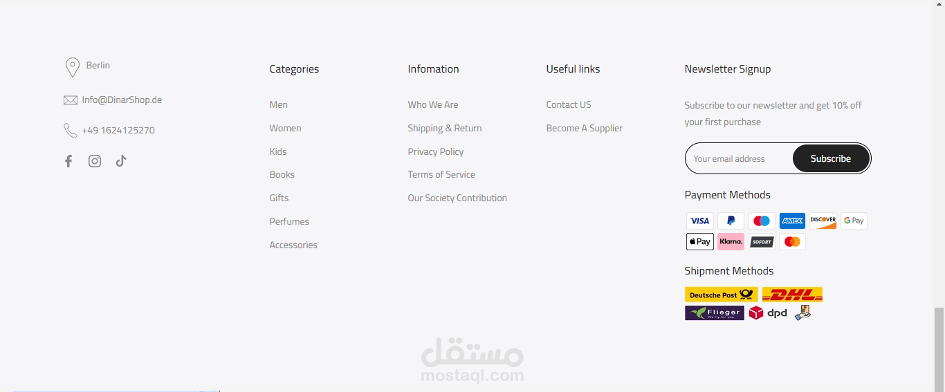 تصميم متجر دينار على منصة shopify
