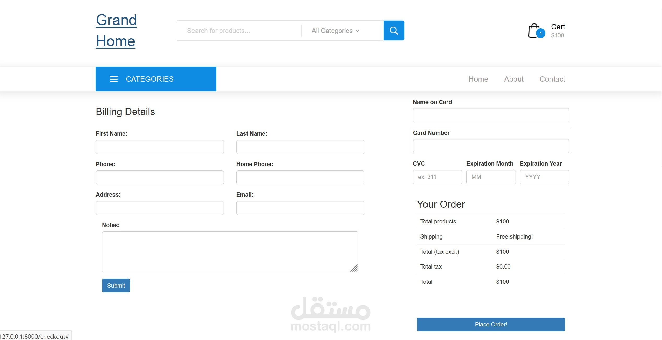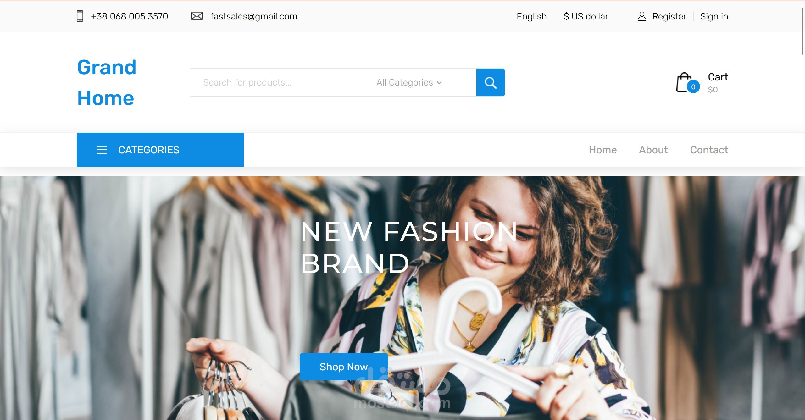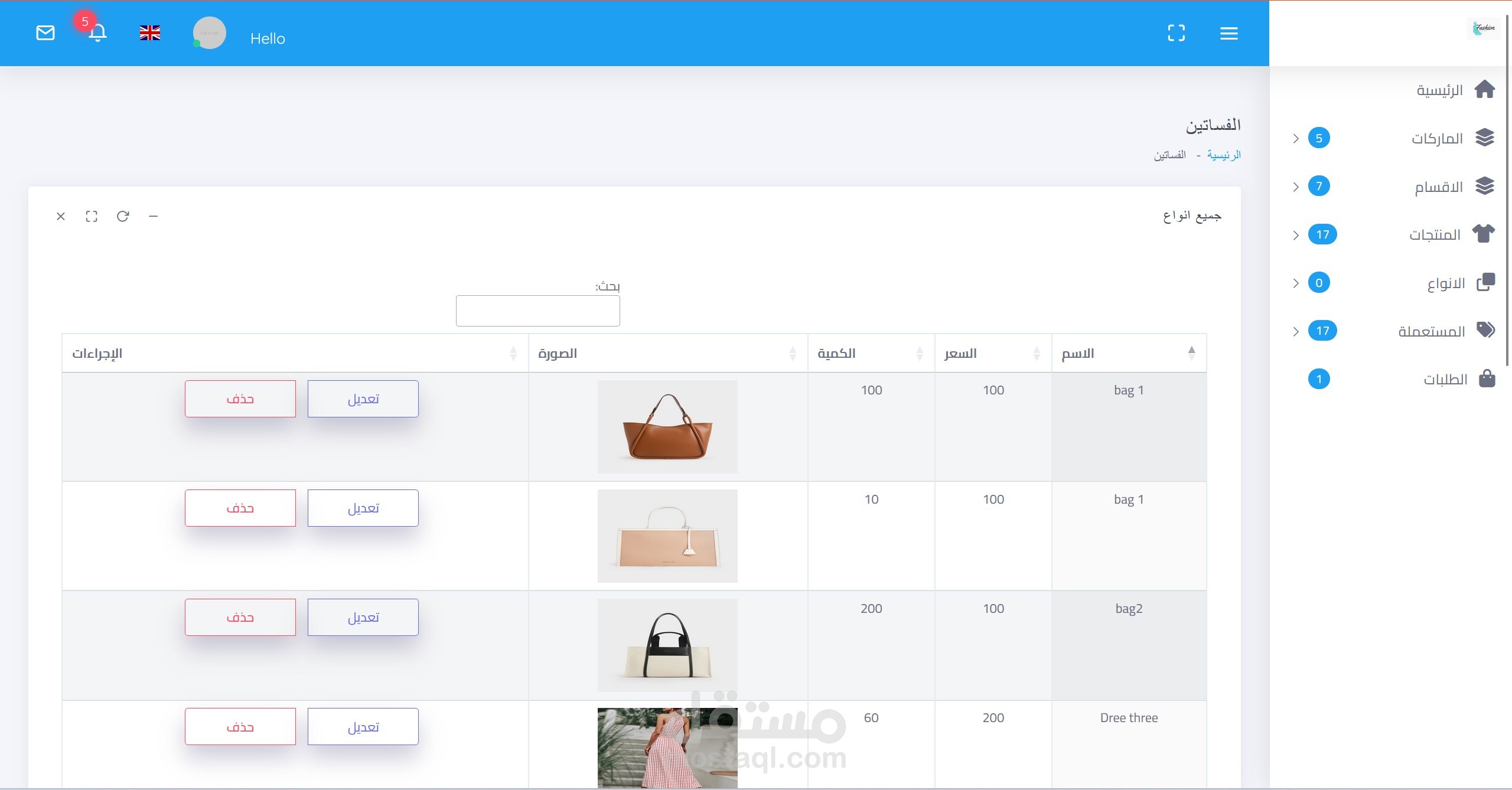 متجر الكتروني لملابس نسائية مع لوحة تحكم لاضافة الاقسام والملابس والاحجام والالوان والطلبات مع خاصية الدفع الالكتروني