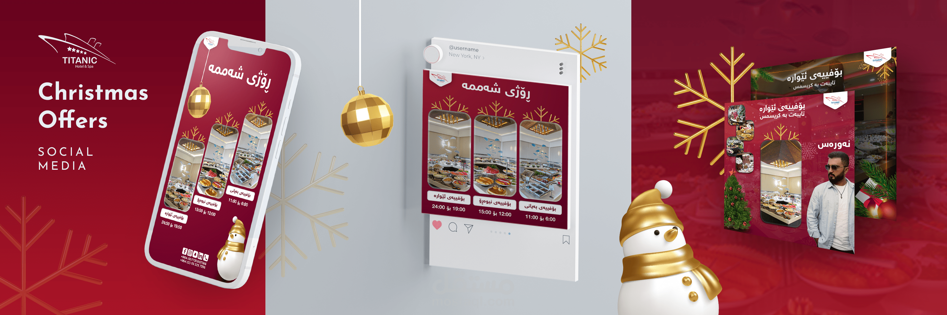 This project showcases a series of stunning graphic designs for Christmas offers at a luxurious 5-star hotel. The designs feature elegant and festive elements such as Christmas trees, snowflakes, and ornaments, coupled with the hotel's branding to create a cohesive and inviting aesthetic. These designs can be used for various promotional materials, including social media posts, email newsletters, and print advertisements.