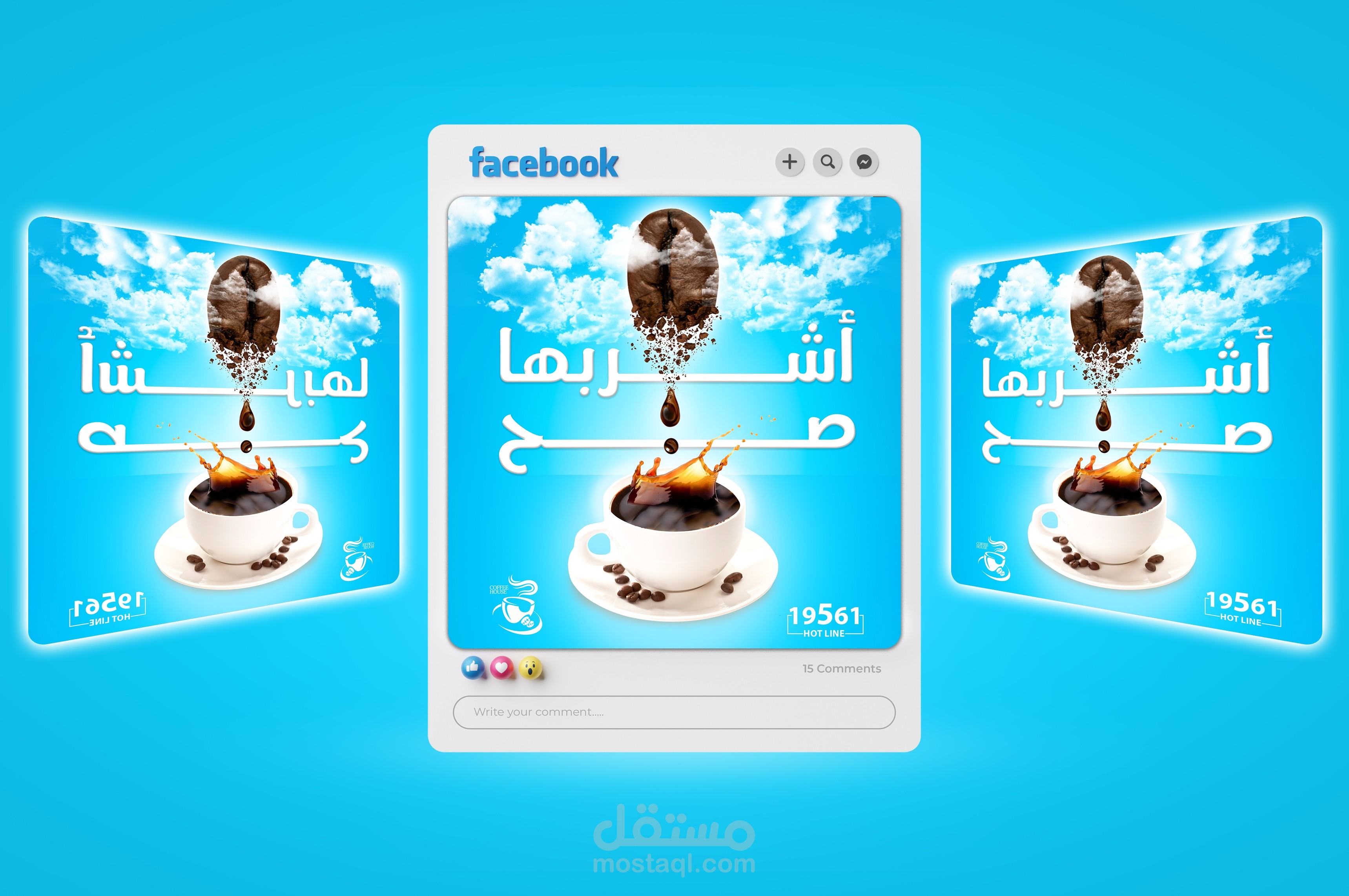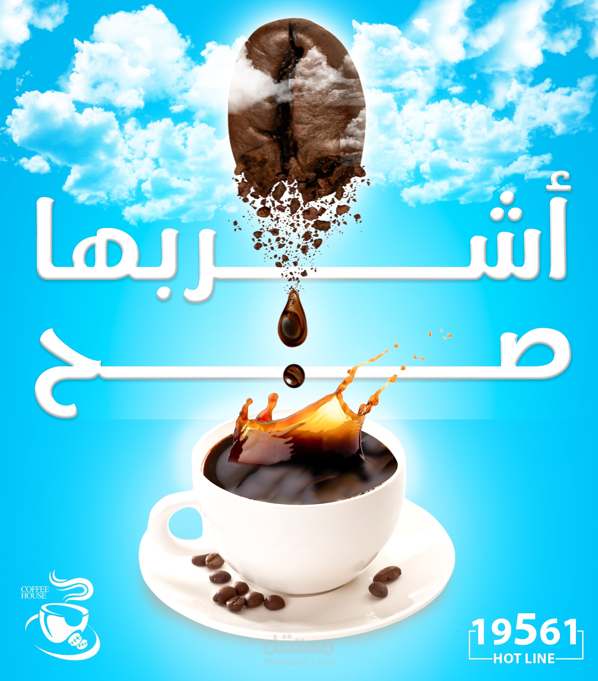 تصميم بوستر اعلاني لكوب من قهوه بشكل جزاب ويعكس جودة البن المستخدم