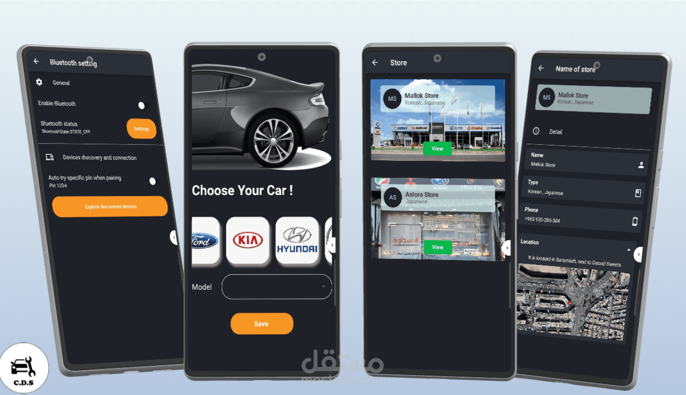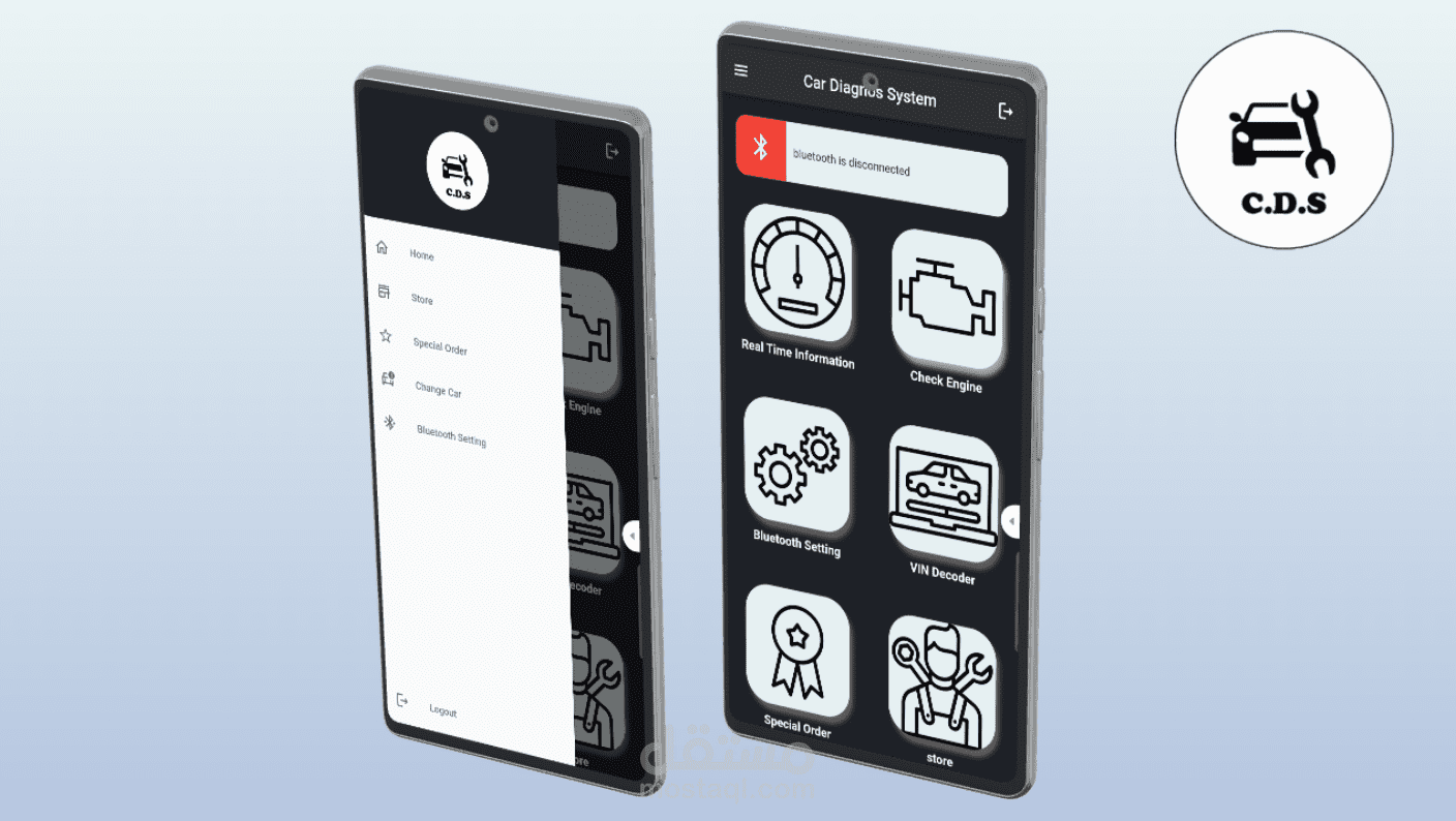 تطبيق لكشف أعطال السيارات وأعطاء موشرات لحظية لمعومات السيارة (سرعة السيارة وموشر معدل جهد البطارية ..الخ)