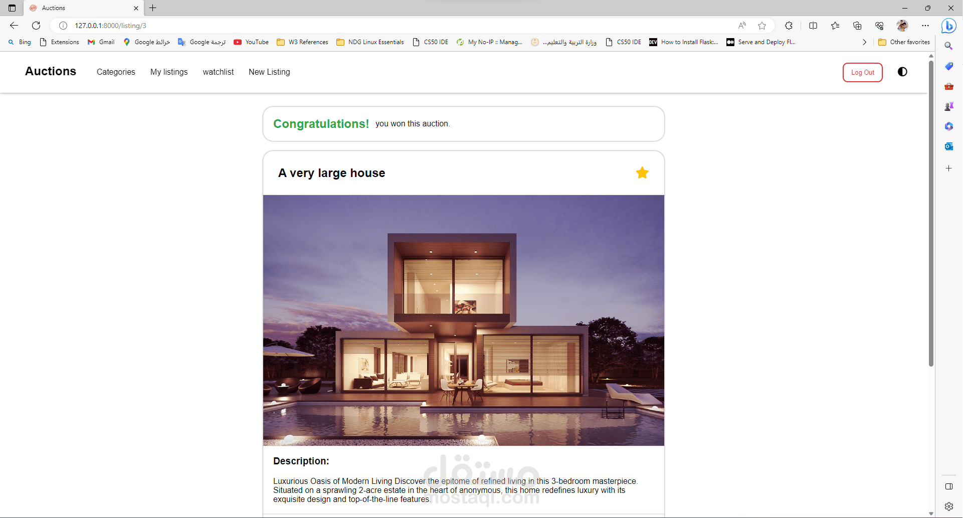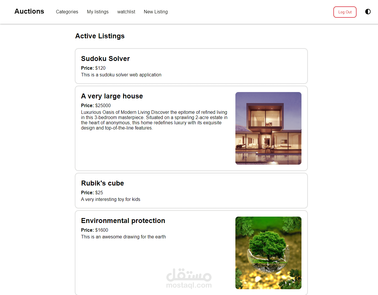 تطبيق البيع في المزاد عبر الإنترنت هو منصة مبتكرة تمكن المستخدمين من شراء وبيع مجموعة متنوعة من العناصر عبر عمليات المزاد عبر الإنترنت. يوفر التطبيق تجربة سلسة ومثيرة للمشترين والبائعين، حيث يمكن للبائعين عرض منتجاتهم بطريقة مبتكرة وجذابة، ومن ثم يمكن للمشترين المشاركة في المزادات وتقديم العروض للحصول على أفضل الصفقات.