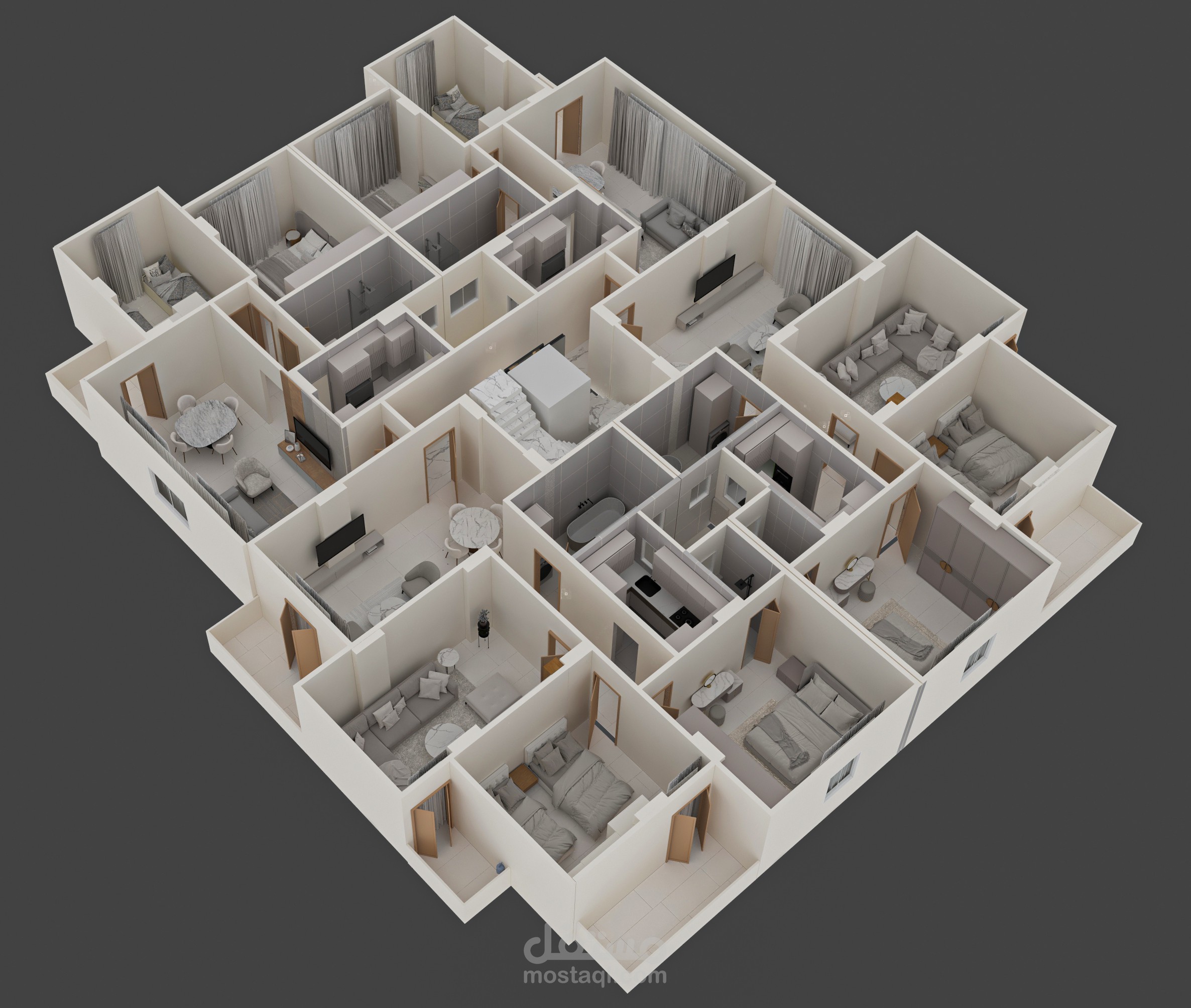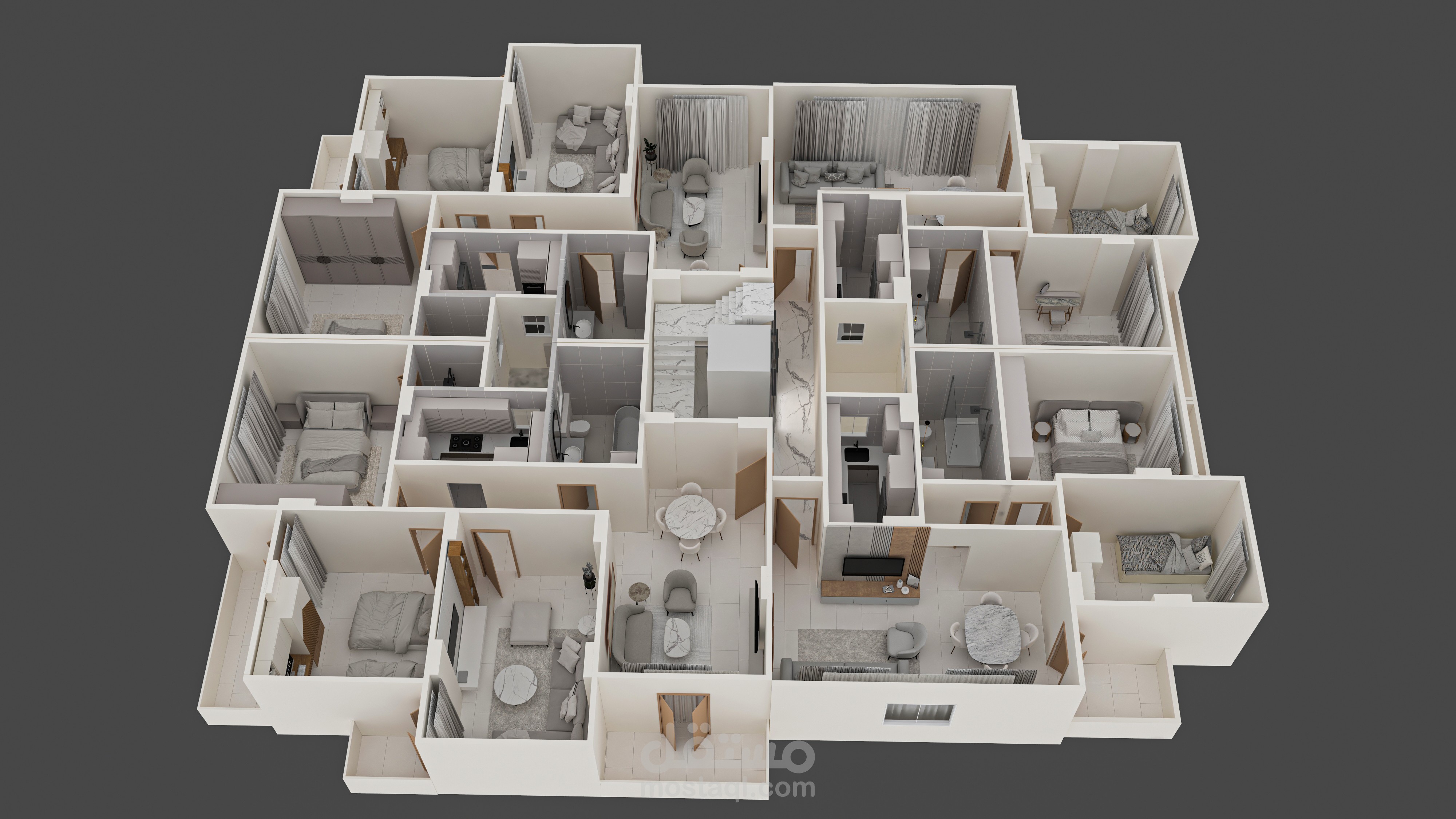 3d plan for 4 apartments