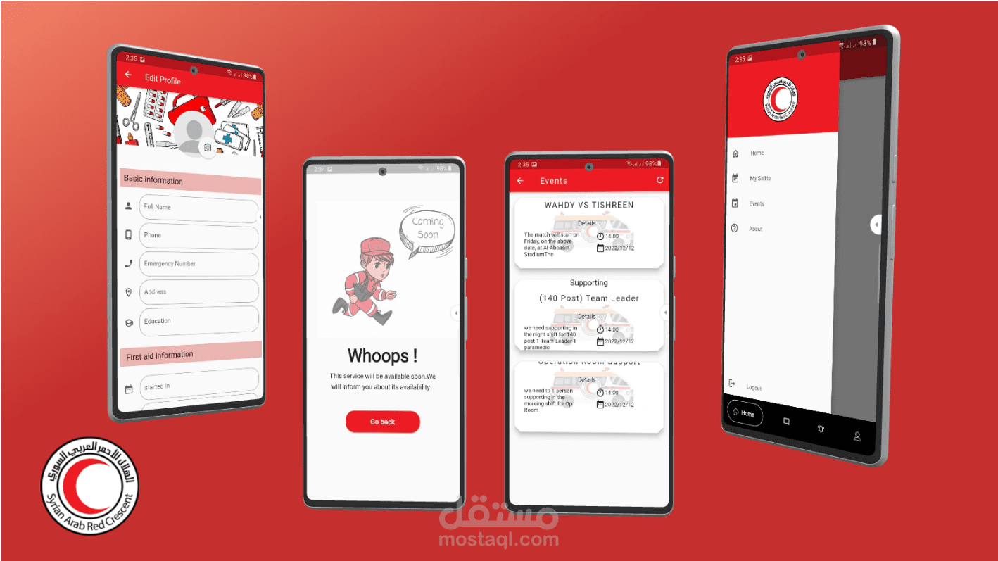 تطبيق موبايل يعمل عل أجهزة (Android , IOS) يقوم بتنظيم عمل مسعفين في منظمة الاٍسعاف الدولية بإضافة الى ملفات شخصية لكل مسعف .