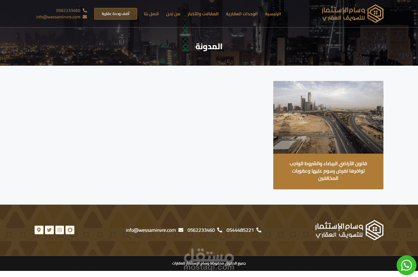 تصميم موقع لشركة استثمار و تسويق عقاري