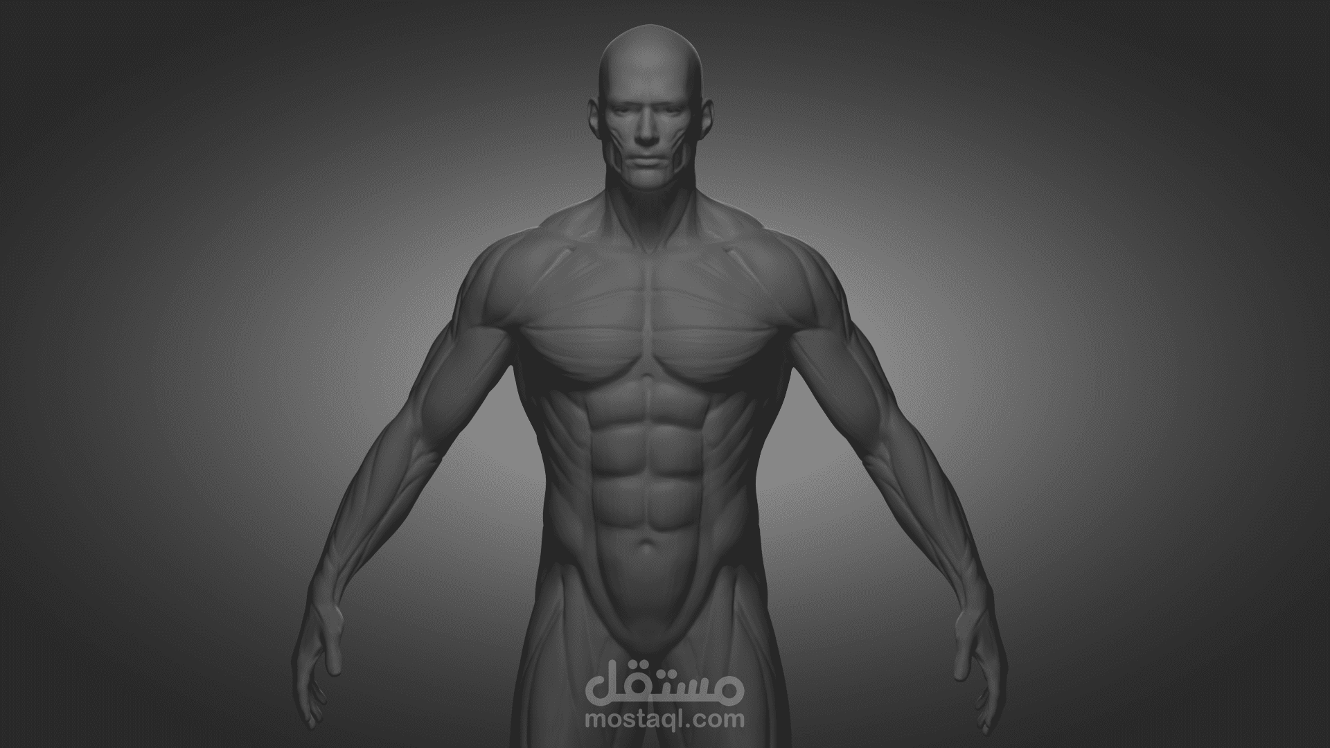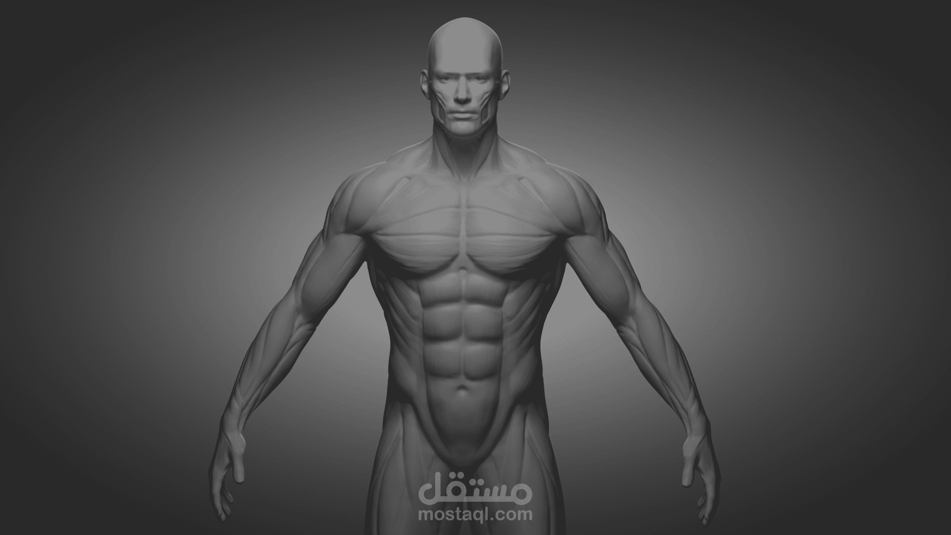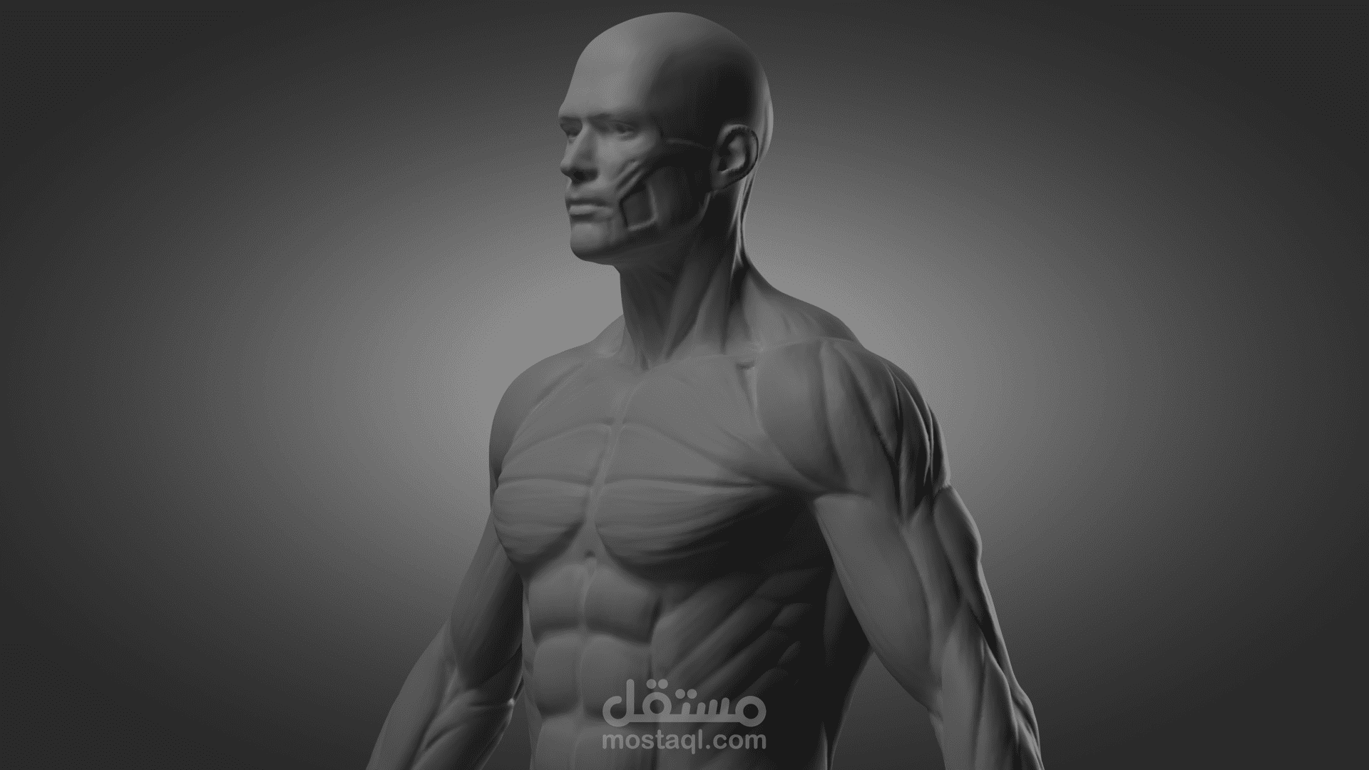 مجسم 3D لجسم انسان موضحا فيه العضلات بطريقة احترافية