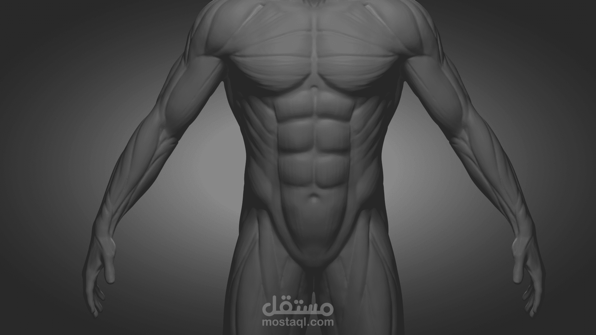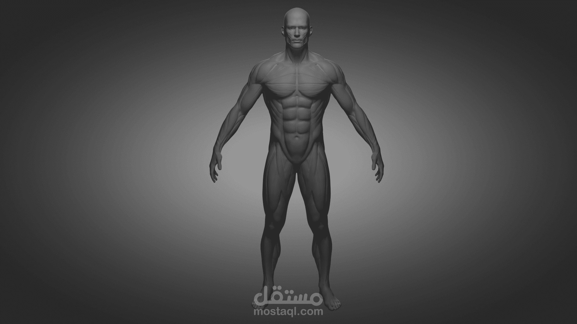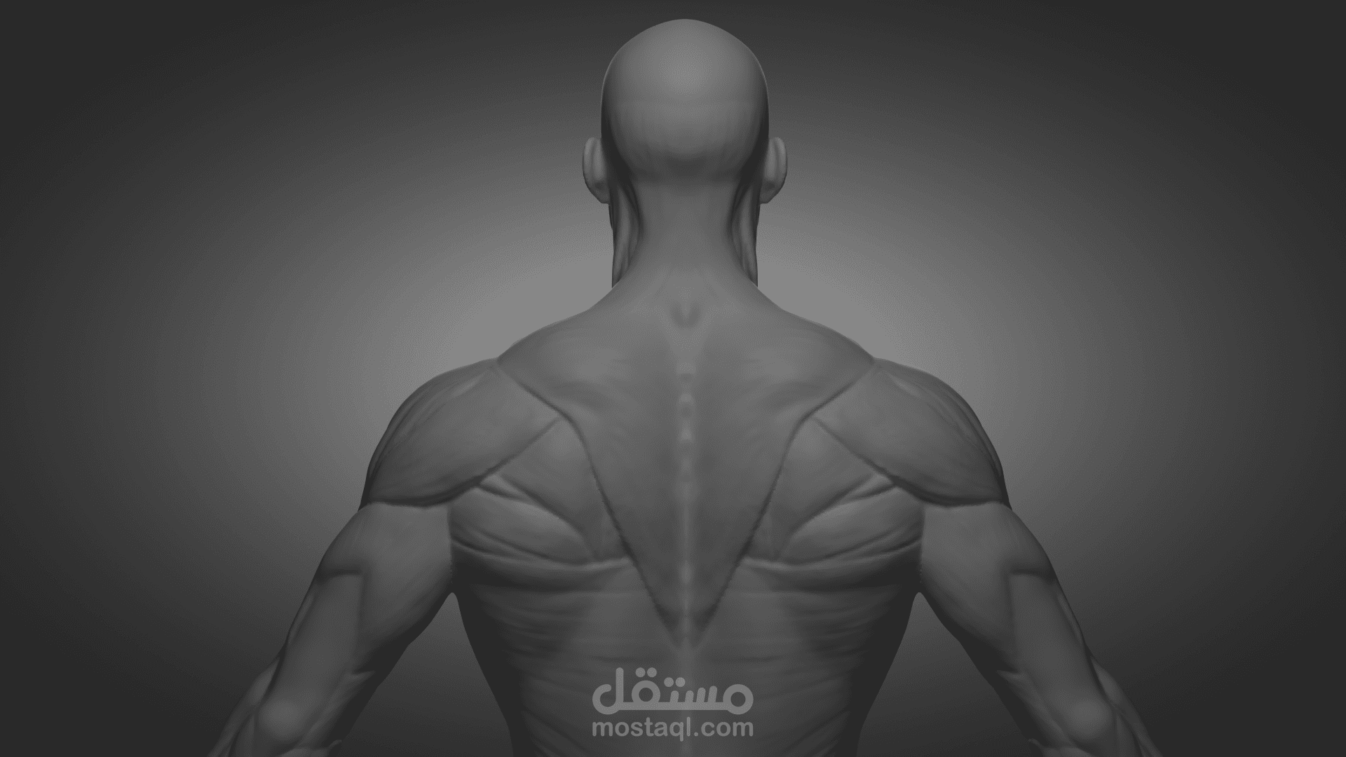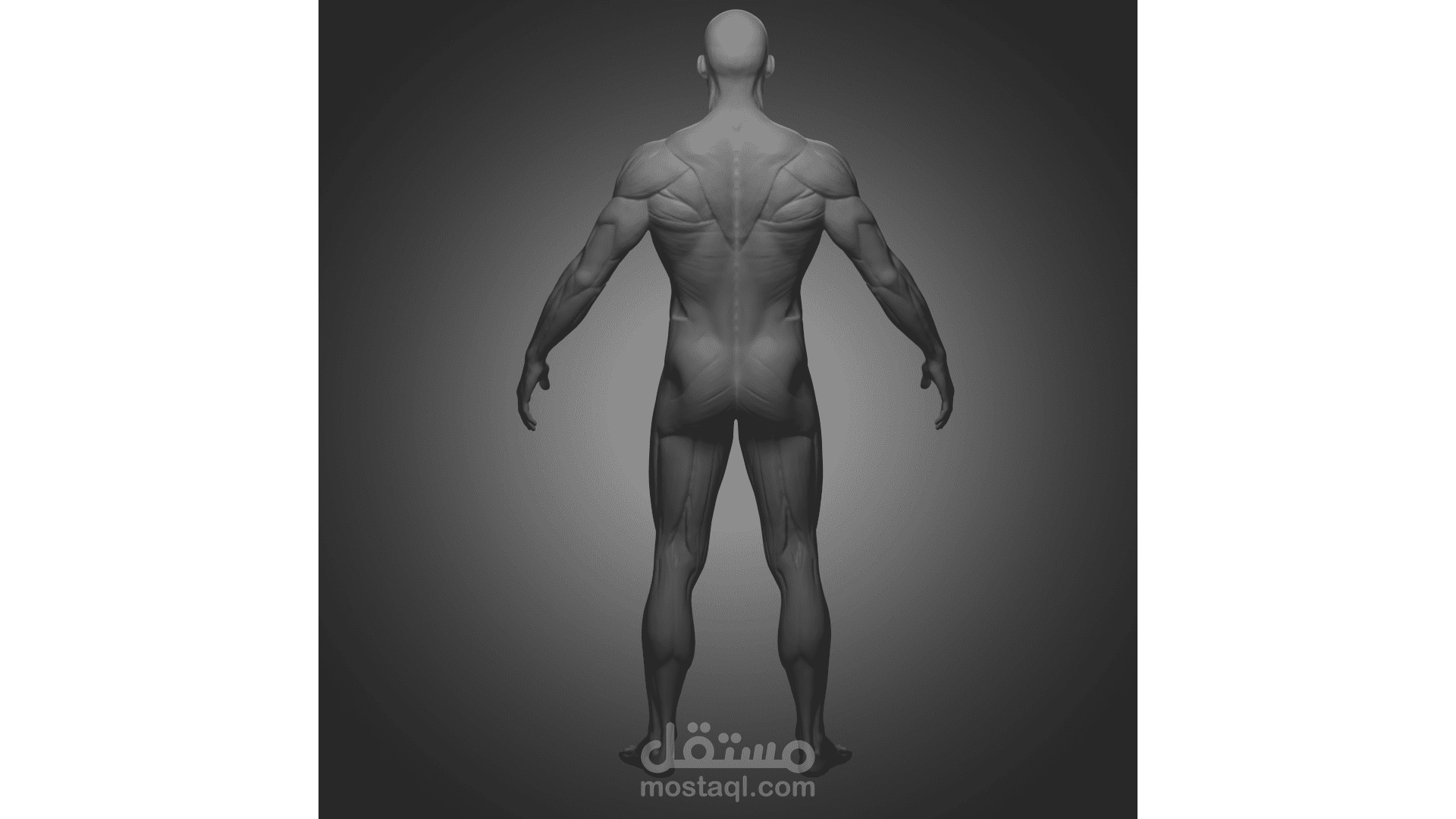 مجسم 3D لجسم انسان موضحا فيه العضلات بطريقة احترافية