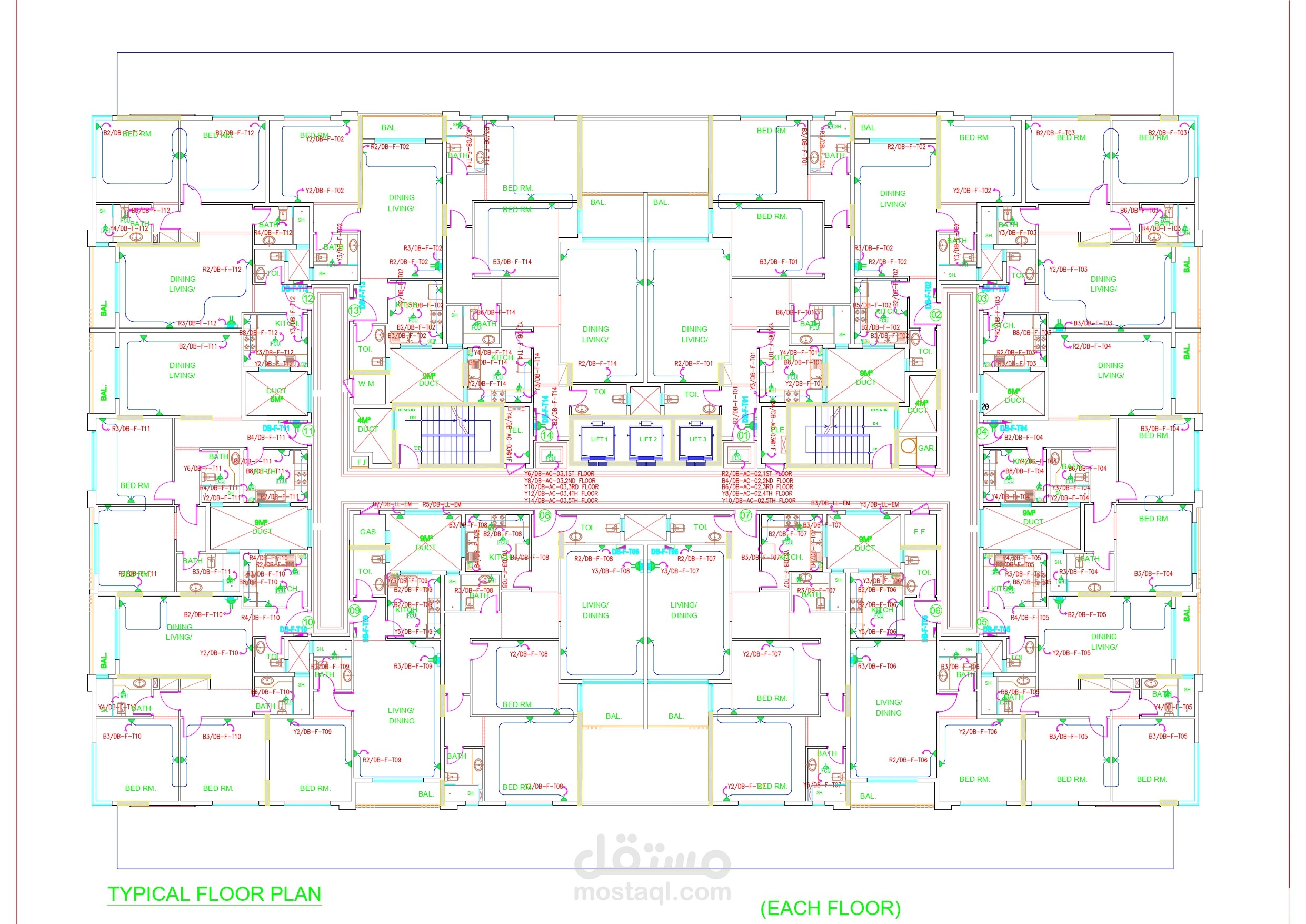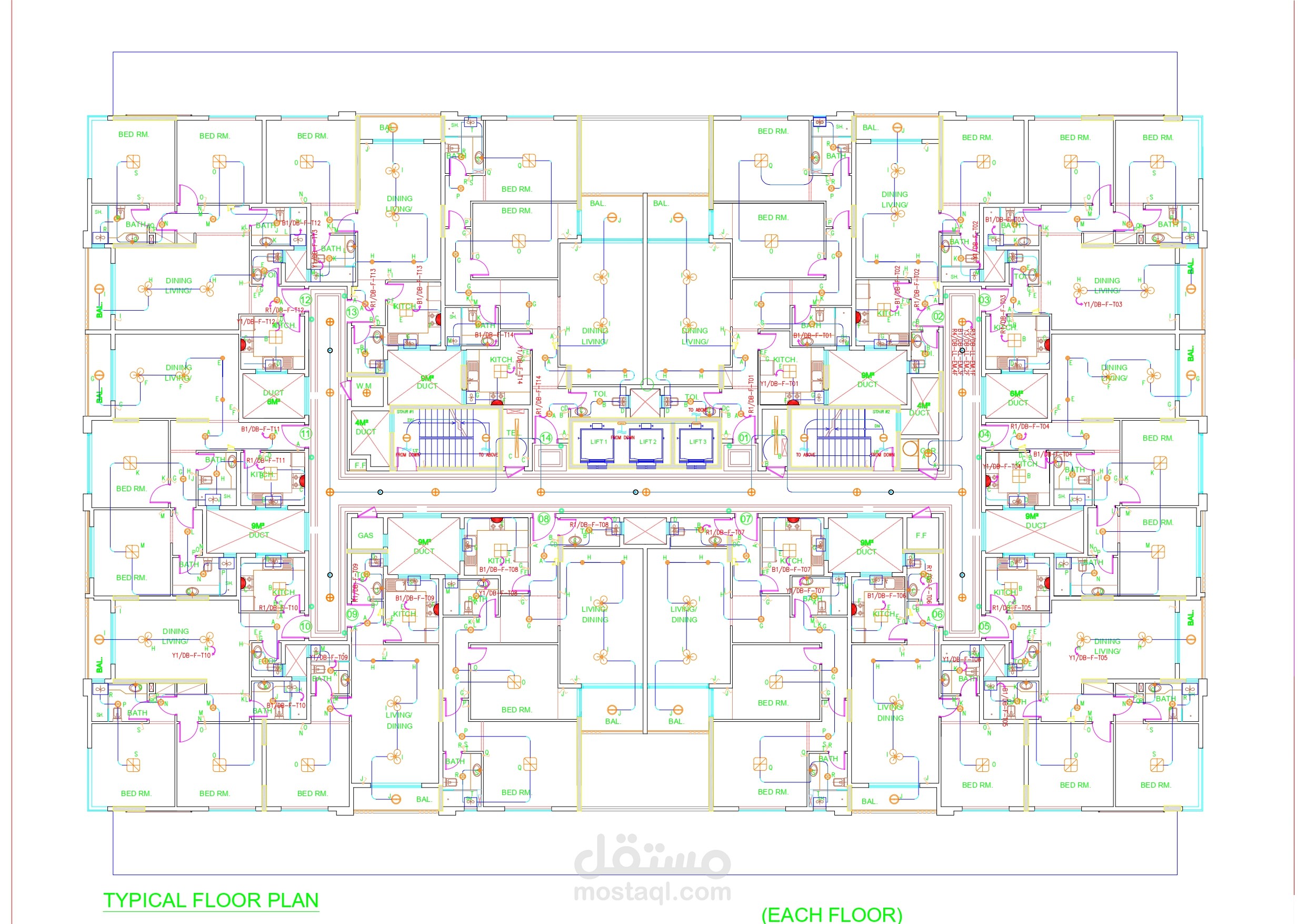 Each typical floor has SMDB which is connected with main LV-panel by separate cable.